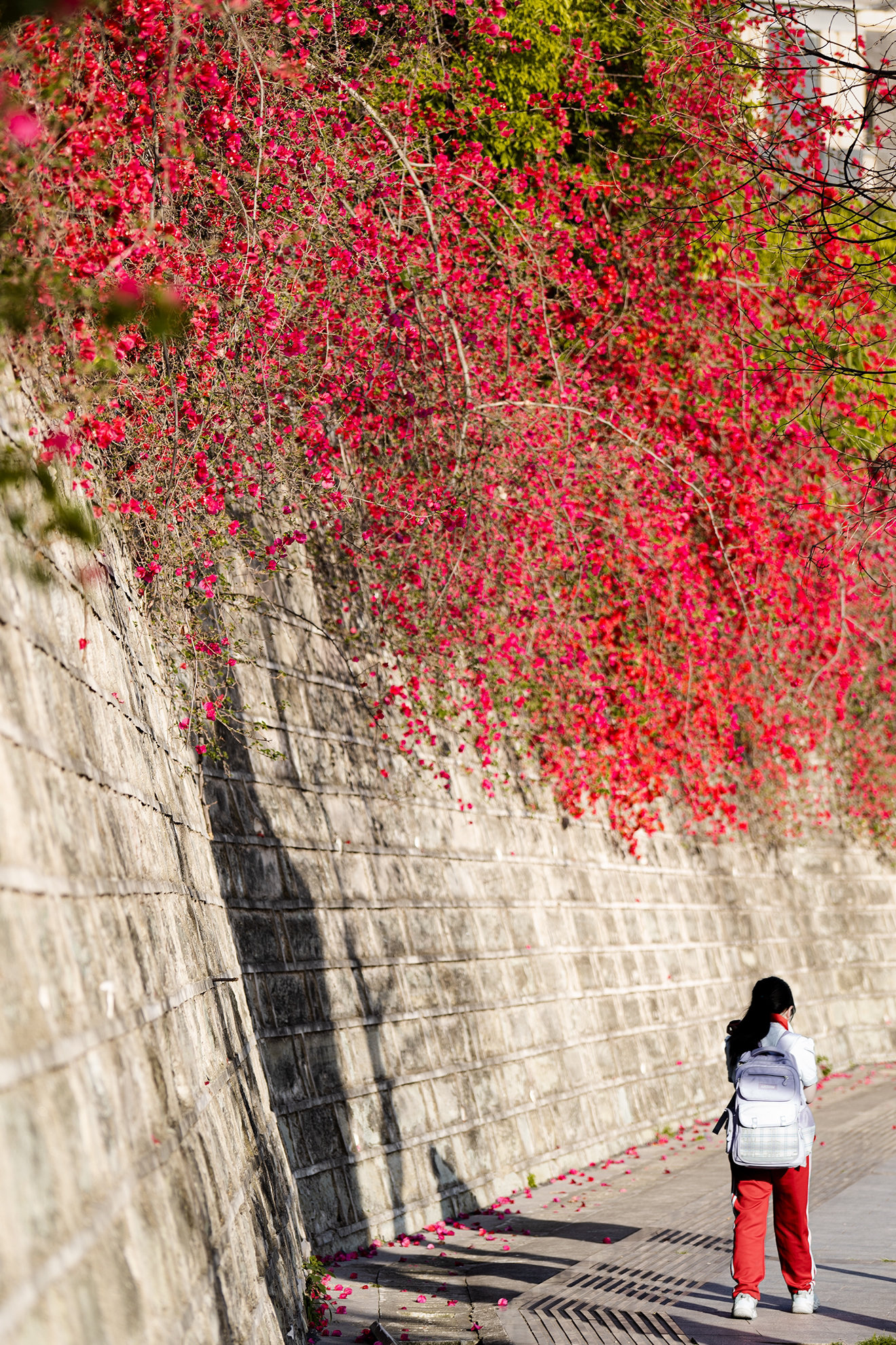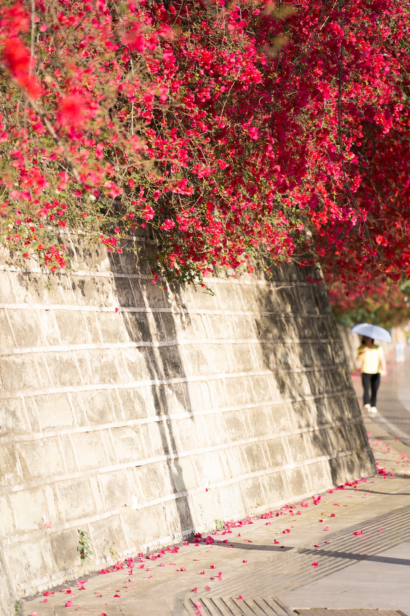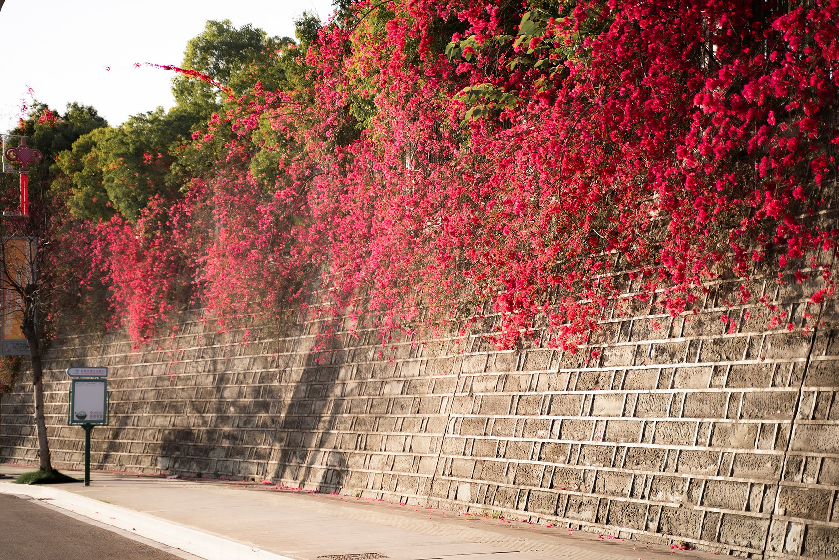 5月13日,初夏的温暖阳光洒满大地,内江市市中区石羊大道的三角梅迎来了盛花期,近百米的三角梅随风摇曳,红花簇拥飘荡。