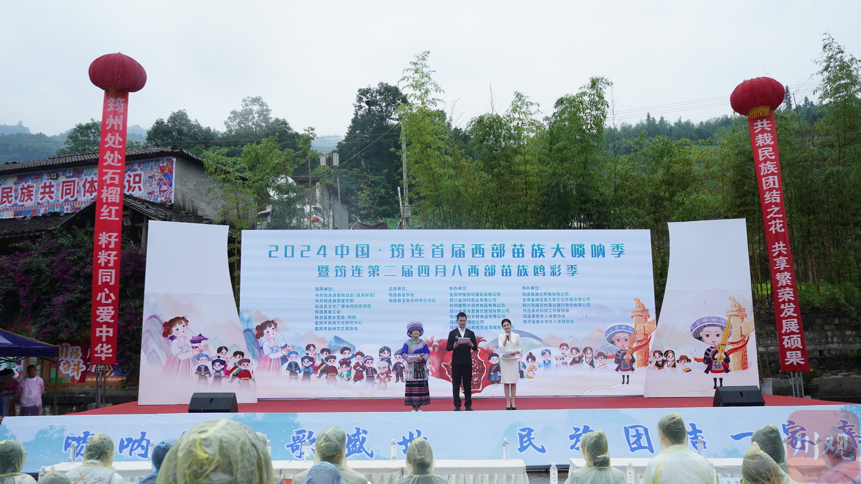 5月15日,2024中国 · 筠连首届西部苗族大唢呐季暨筠连第二届四月八西部苗族鸥彩季在宜宾市筠连县联合苗族乡革新村格兜坝苗寨玉兔山庄举行,八方游客与当地群众欢聚一堂,以歌为媒,以舞会友,共享苗族独特风情。