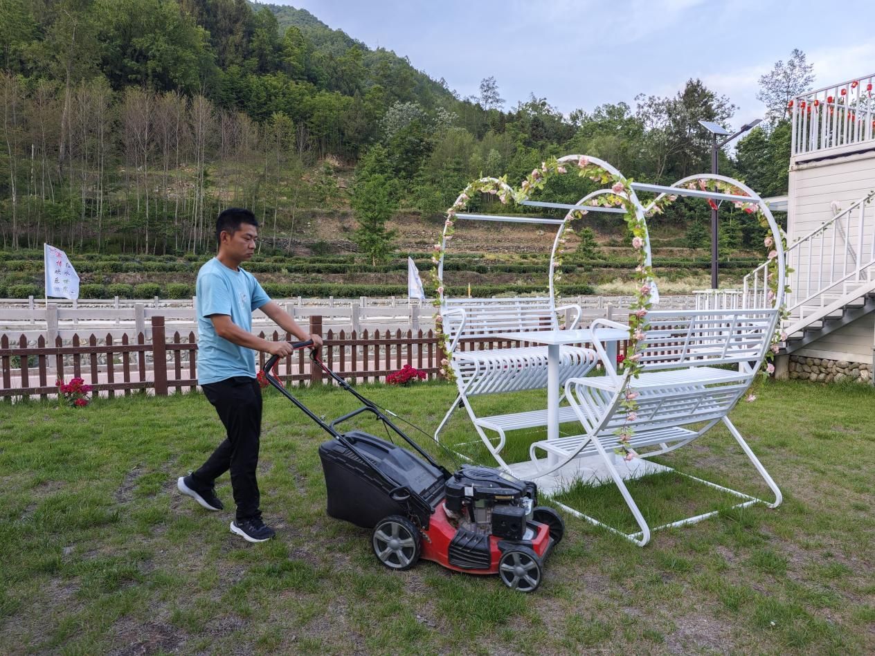 民宿老板整理草坪迎接即将到来的客人。杨都 摄