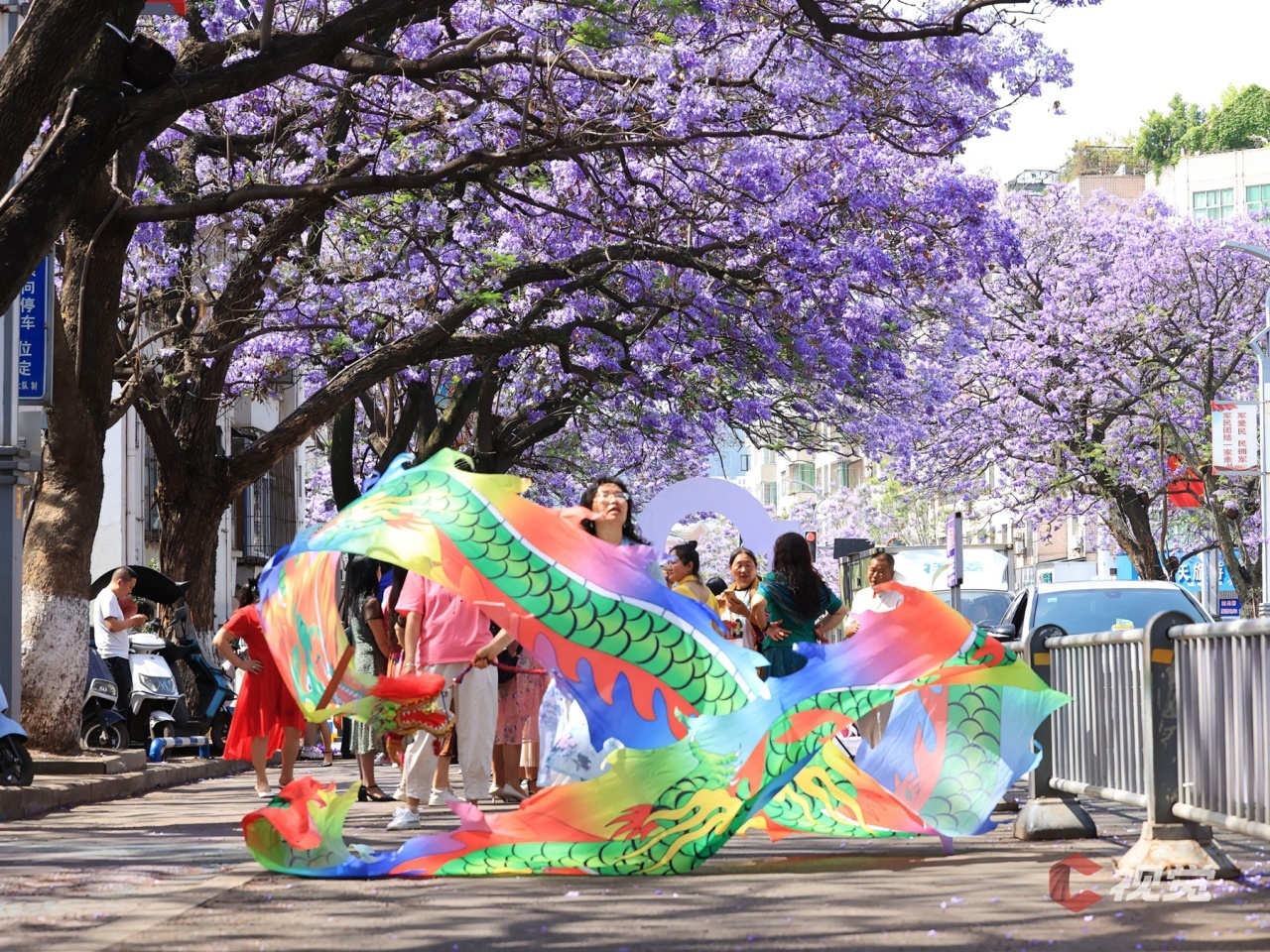 4月底,西昌市航天北路蓝花楹盛放,市民和游客纷纷前来拍照打卡,沉浸在这梦幻般的场景之中。