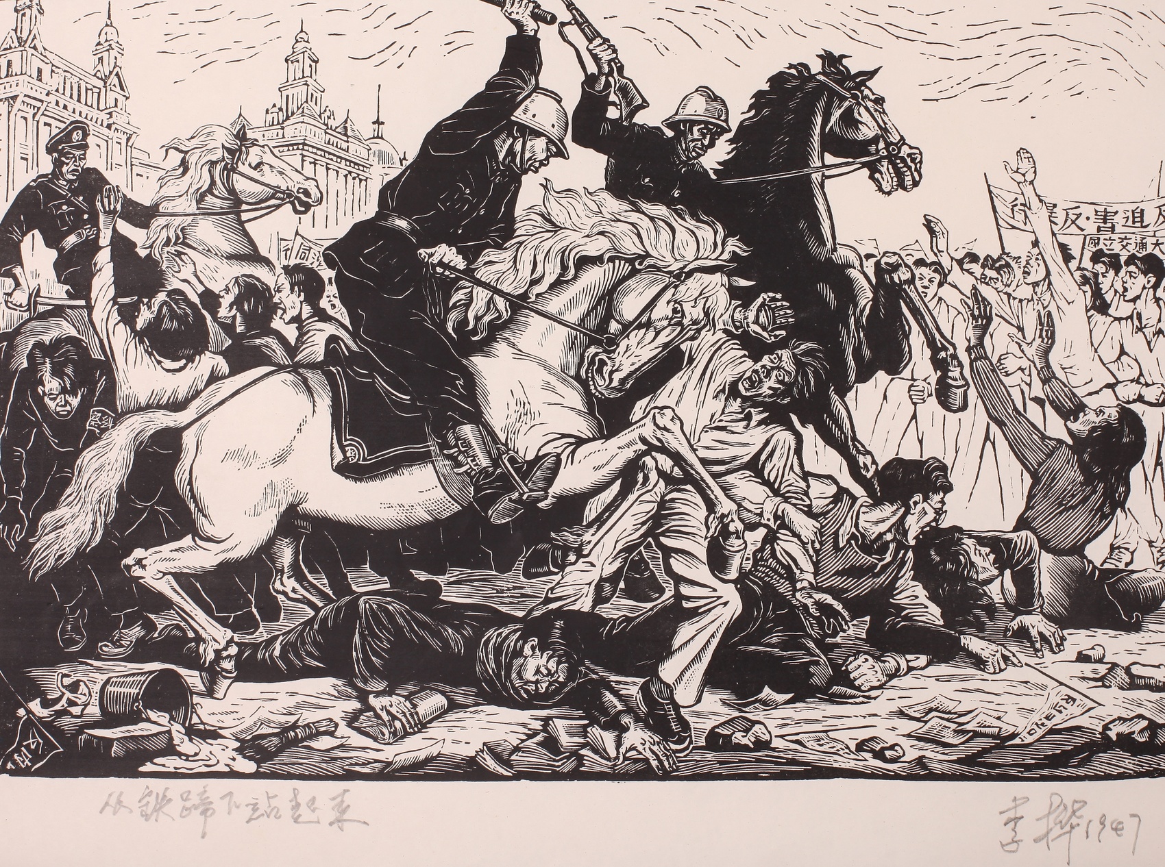 《从铁蹄下站起来》创作于1947年,作者李桦是著名版画家、美术教育家,也是新兴木刻运动的先驱,中国现代版画事业的奠基者。他青年时期就积极从事以救亡图存为己任的新兴木刻运动,创作了一系列现实主义作品。