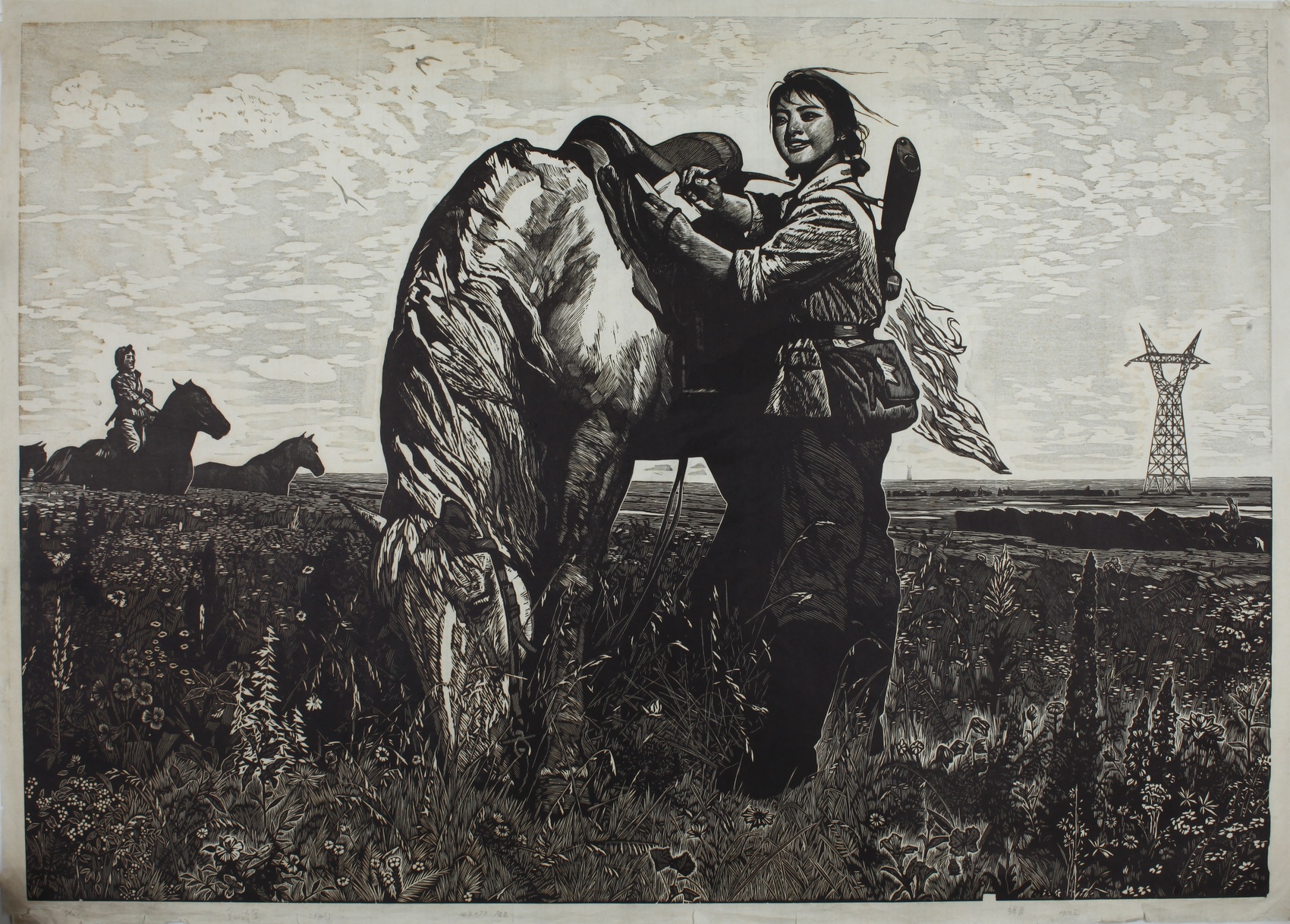 徐匡 《草地诗篇》 黑白木刻 73cm×104cm 1975年