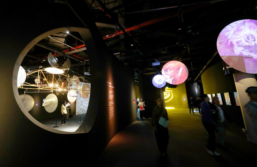 当日,一场名为“宇宙考古——探索时空的科学艺术之旅”的展览在上海天文馆展出。