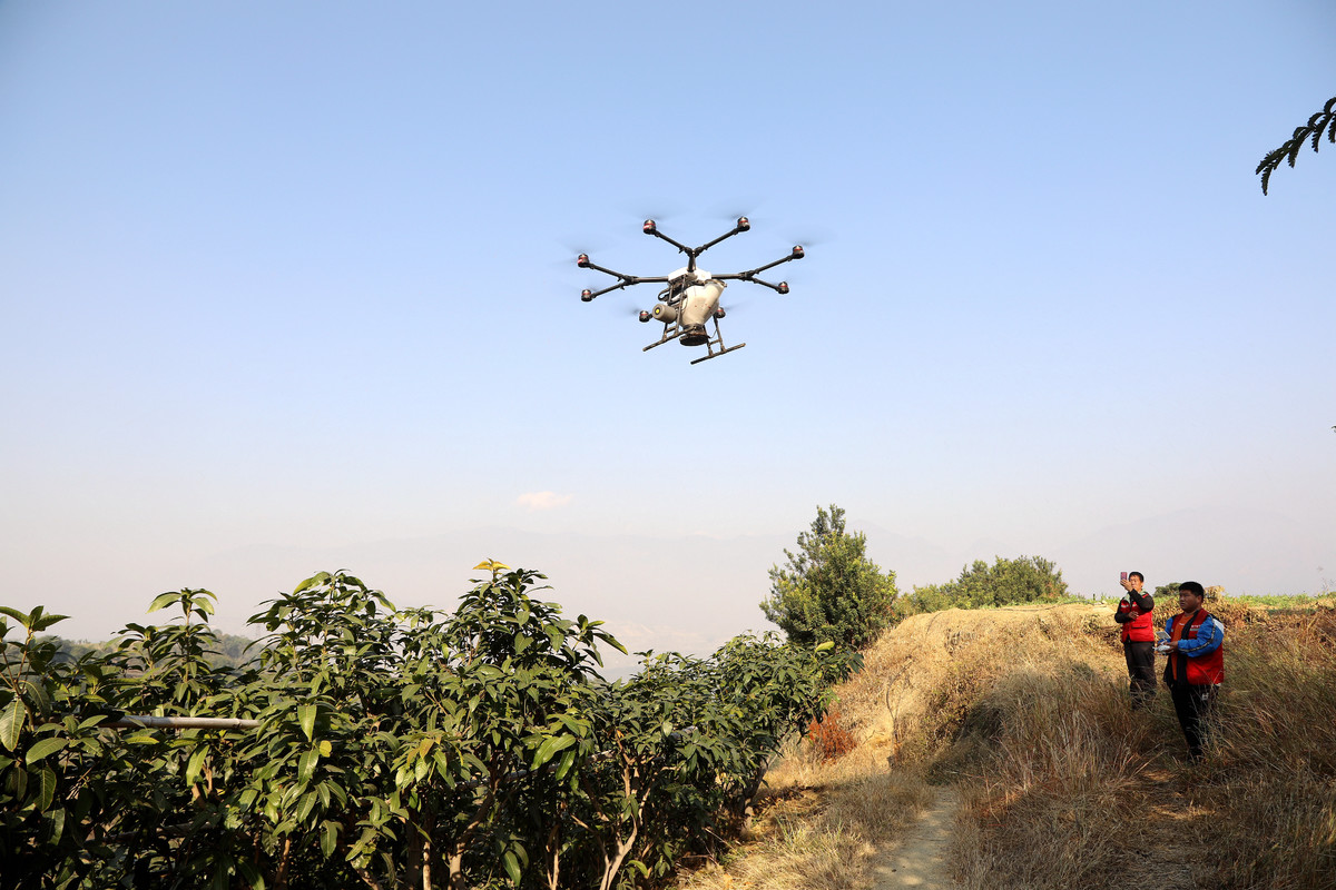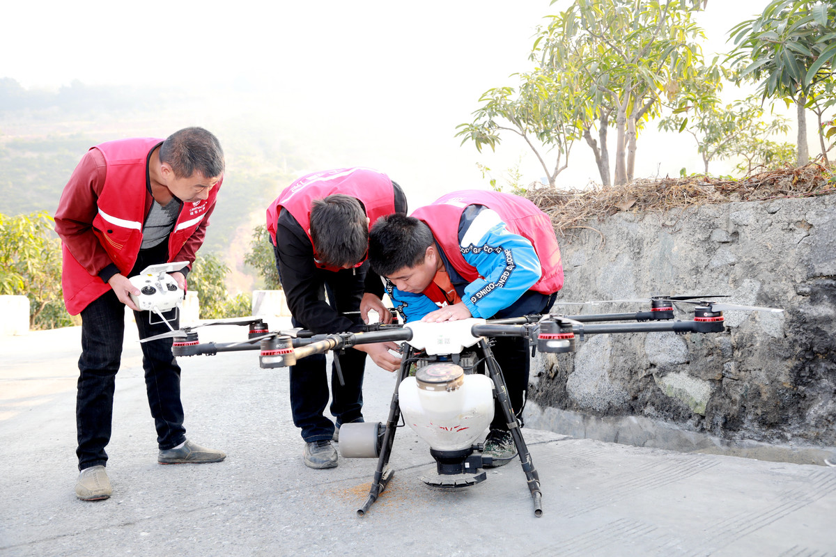 12月9日上午,攀枝花市东区银江镇沙坝村一社,1架8旋翼的无人机腾空而起,在连片芒果林上空来回穿梭,无人机“肚子”里接连吐出一粒粒杀蚁饵剂,均匀地播撒到田间地头。红火蚁入侵果园、农田,东区启用无人机施药“相助”,开展专业化防治。