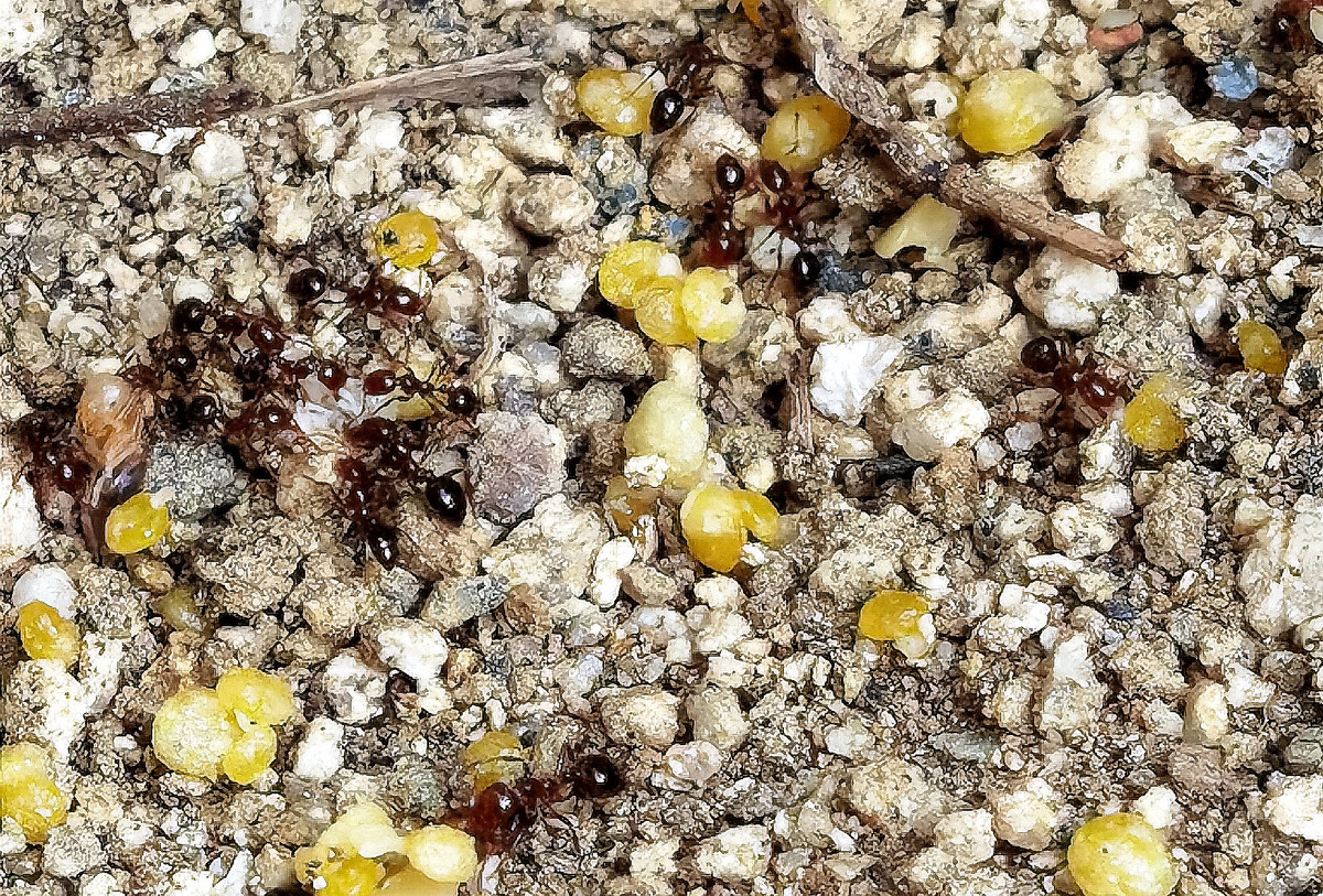 在无人机机身下部,挂有一个桶状的装置,里面装满了黄色颗粒物,这就是杀蚁饵剂。“针对红火蚁外出觅食时,习惯将食物搬运回巢穴共享的生活习性施药,直接“连窝端”,灭杀更彻底。” 东区农业农村局和交通水利局农业股股长李清泉说,别看红火蚁个头不大,但习性凶猛、繁殖迅速,成虫食性广泛,不单取食植物,还取食昆虫等小动物,是生物多样性保护和农林生产的大敌,造成农田弃耕、咬伤家禽、危及敏感人群生命安全。