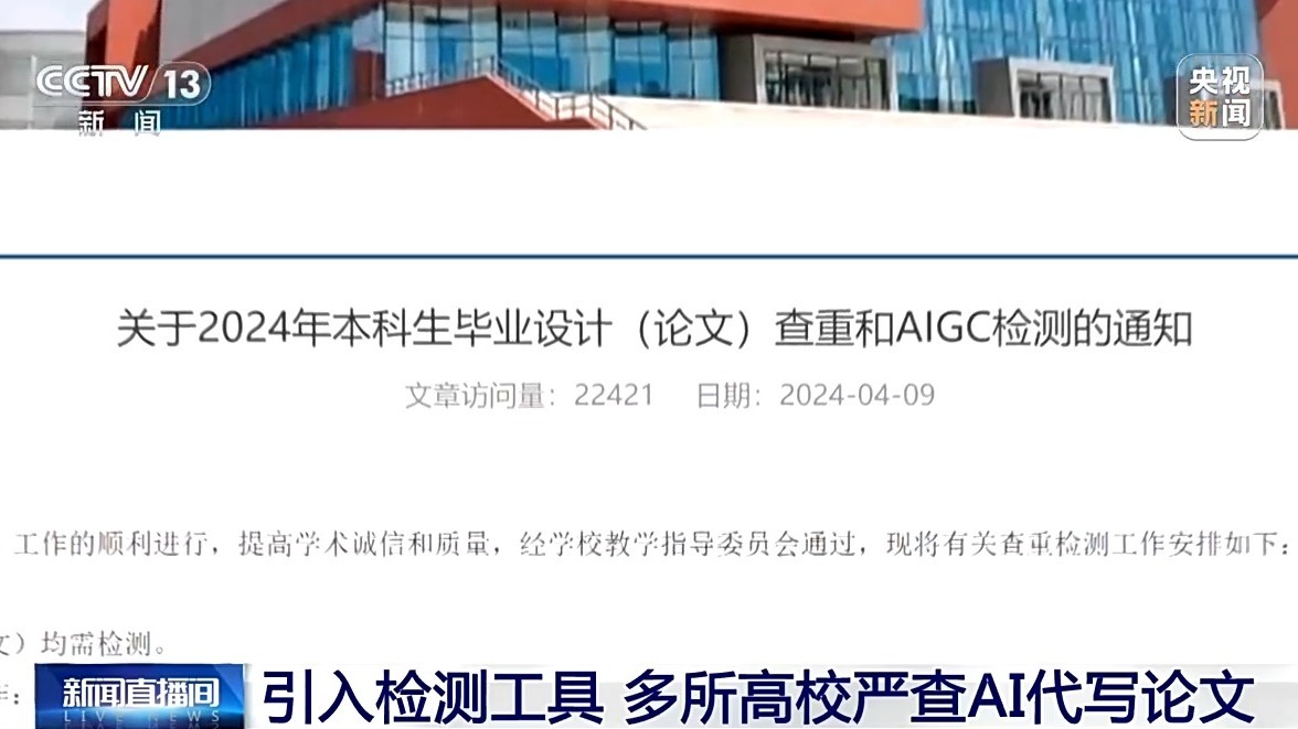 现在,2024届高校毕业生陆续进入论文答辩阶段,多地高校发表声明,明确将引入论文检测工具,严查AI(人工智能)代写论文的行为。
