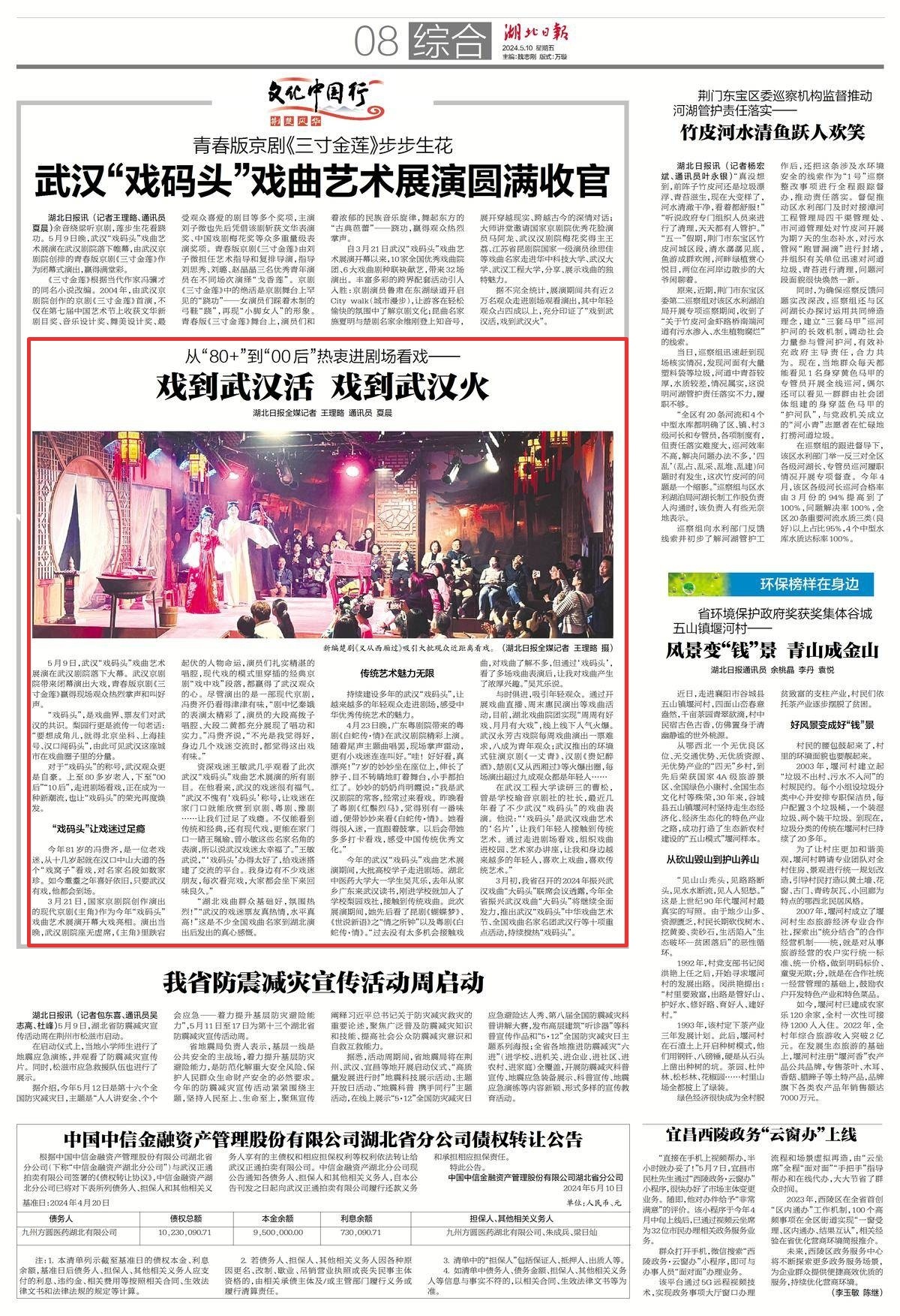 3月初,我省召开的2024年振兴武汉戏曲“大码头”联席会议透露,今年全省振兴武汉戏曲“大码头”将继续全面发力,推出武汉“戏码头”中华戏曲艺术节、全国戏曲名家名团武汉行等十项重点活动,持续搅热“戏码头”。