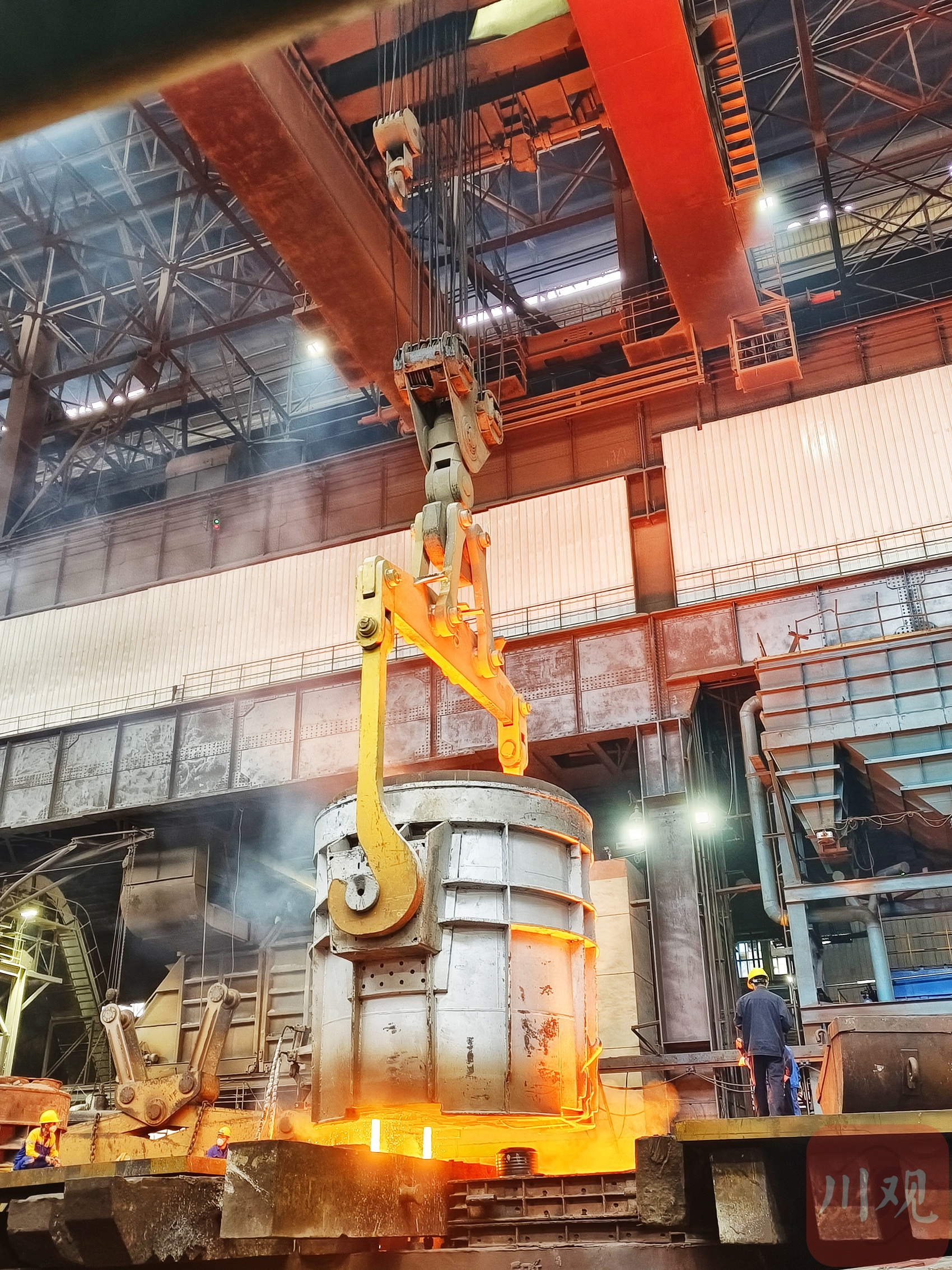 图为转轮体铸钢件浇注现场。韩童童 摄