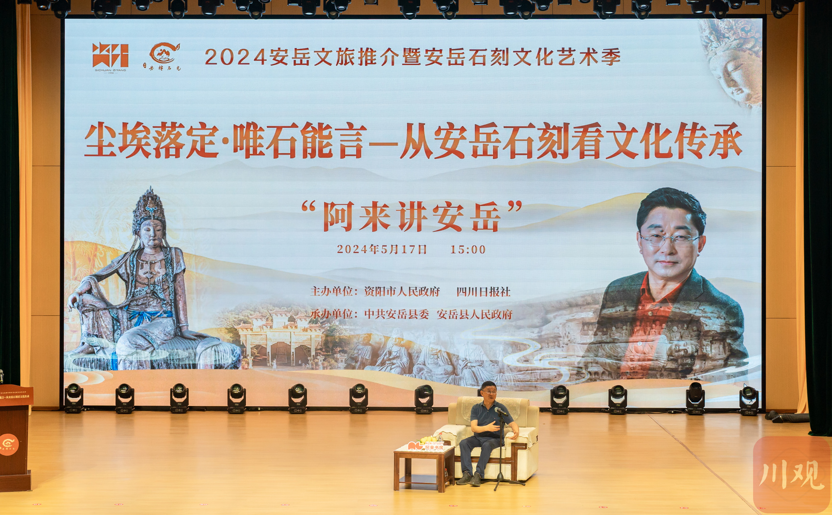 藏在深山、默默无言的石窟造像,为何能令世人神往?这些精美绝伦的石刻艺术,蕴含着什么样的文化内涵?5月17日,在国际博物馆日和中国旅游日来临前夕,由资阳市人民政府、四川日报社主办,中共安岳县委、安岳县人民政府承办的“尘埃落定·唯石能言——从安岳石刻看文化传承”阿来讲安岳线下讲座在资阳安岳实验中学举行。