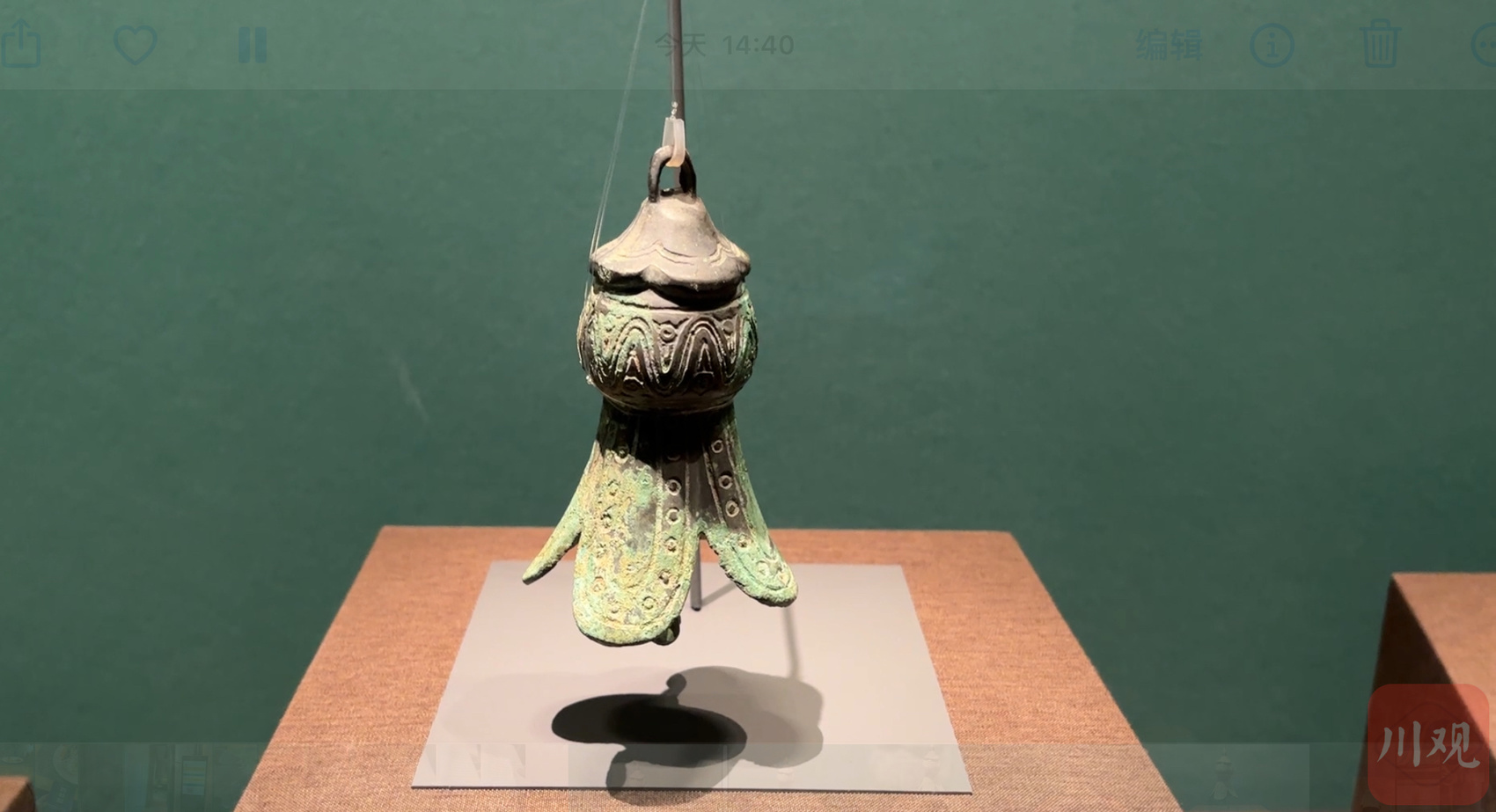 广安市博物馆陈展部部长王浩辉介绍,早在距今约三千年的古蜀地区,礼乐便已经出现。三星堆出土的铜铃、金沙的石磬等乐器从制作之初便被赋予了礼的功能,并在特定的祭祀礼仪中使用,成为当时祭天礼神的重要乐器。此次展出的文物,不仅有商周时期形状各异的铜铃、石磬,也有战国时期用于战争时军队指挥士兵进攻与防守的虎钮錞于、铜钲等。铜铃、石磬是古蜀先民与神灵沟通的见证;錞于、铜钲则折射出了巴人忠勇豪放的精神特质。