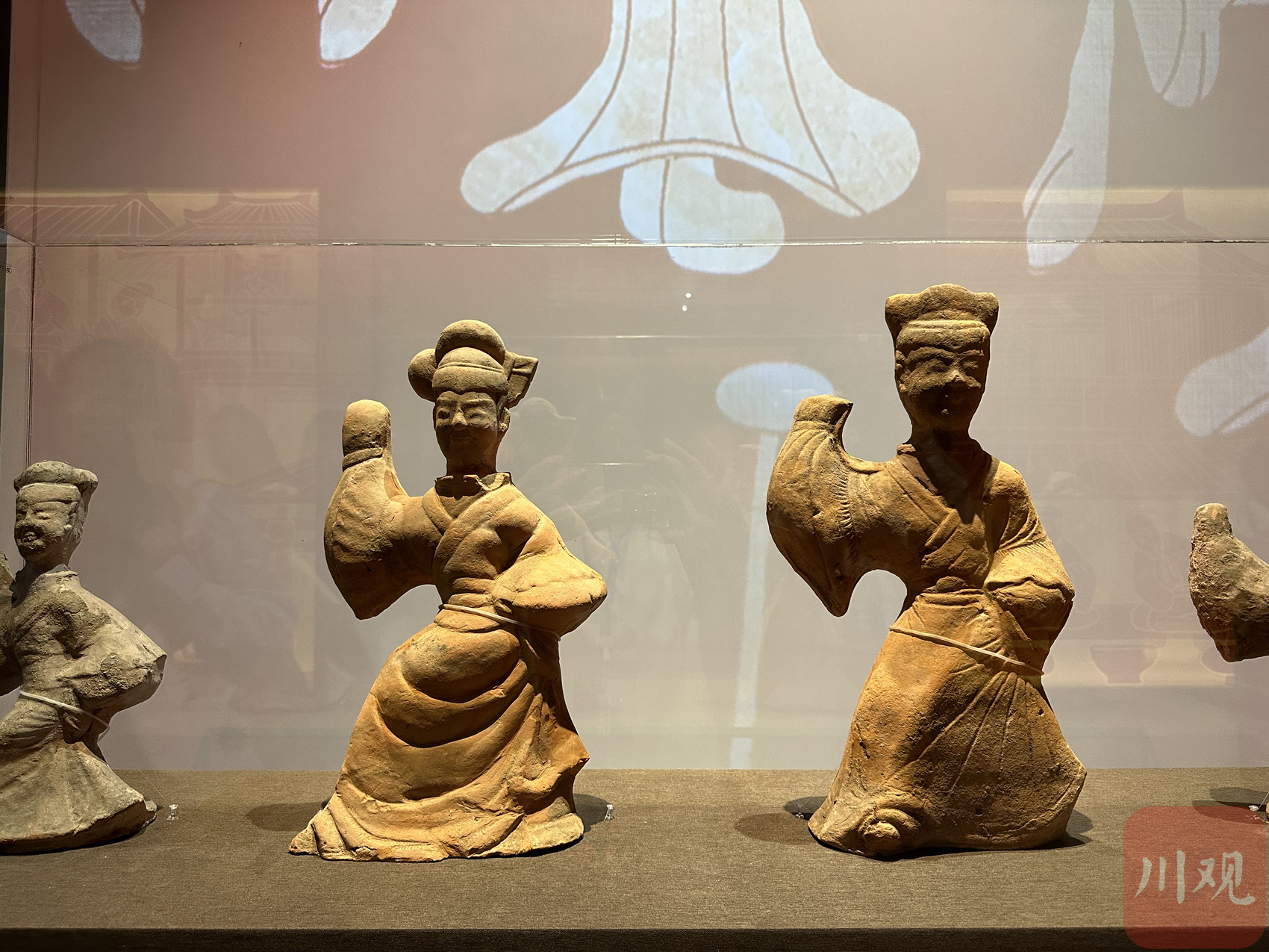 此次展览以时间为序,分四个单元梳理了川渝地区古代乐舞发展的基本脉络,突出展示了每个阶段乐舞发展的重要特征。从先秦时期的祀戎礼乐、到两汉时期的乐天俗乐、再到唐宋时期的交响燕乐、清朝时期的百态曲乐,生动呈现出川渝地区百姓生活的舒适恬淡与安逸满足。