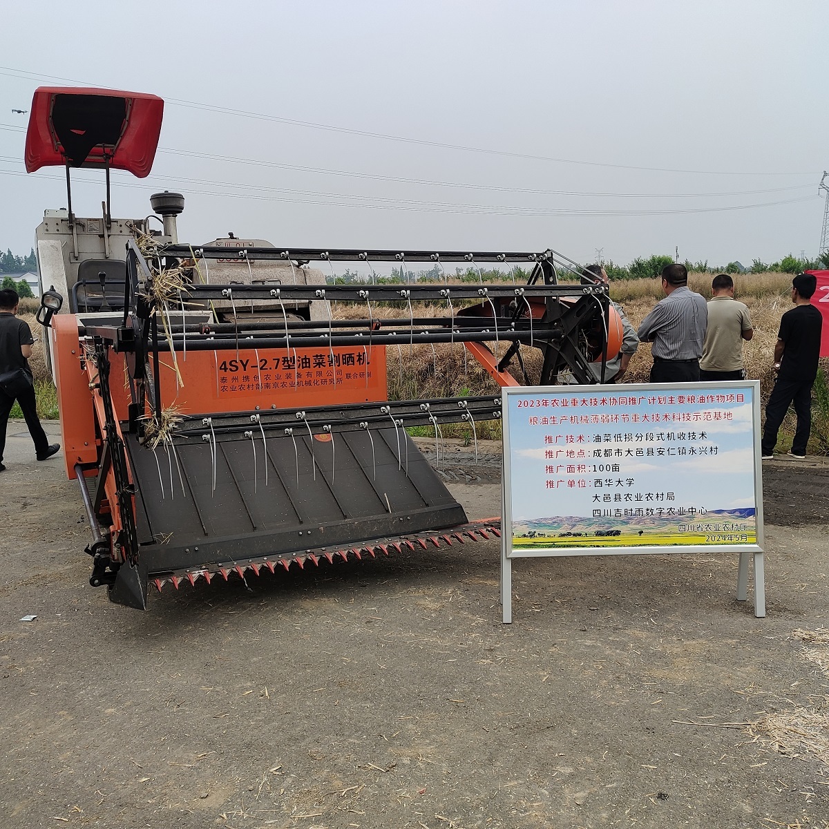 巧合的是,就在5月7日当天,西华大学在大邑县也举行了油菜低损分段式机收技术装备集成推广现场会。西华大学现代农业装备研究院廖敏教授说:“减少收获损失和提高收获质量是四川油菜生产的迫切需求。两段式机收能解决四川油菜种植人工成本居高不下、一段式(联合)机收损失率偏高等问题,还能提高油菜籽出油质量。”