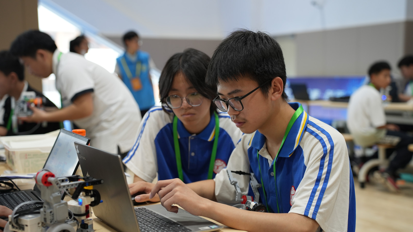 本次活动设有数字创作、智能机器人、智慧体育竞技、无人机普及赛、拥抱 GPT等14个竞赛项目,比赛将持续至19日。比赛期间,参赛选手们火力全开,比脑力、秀绝技,进行一系列的探索、研究、实践和竞技交流,展现出优秀的基本功和精湛的技术。