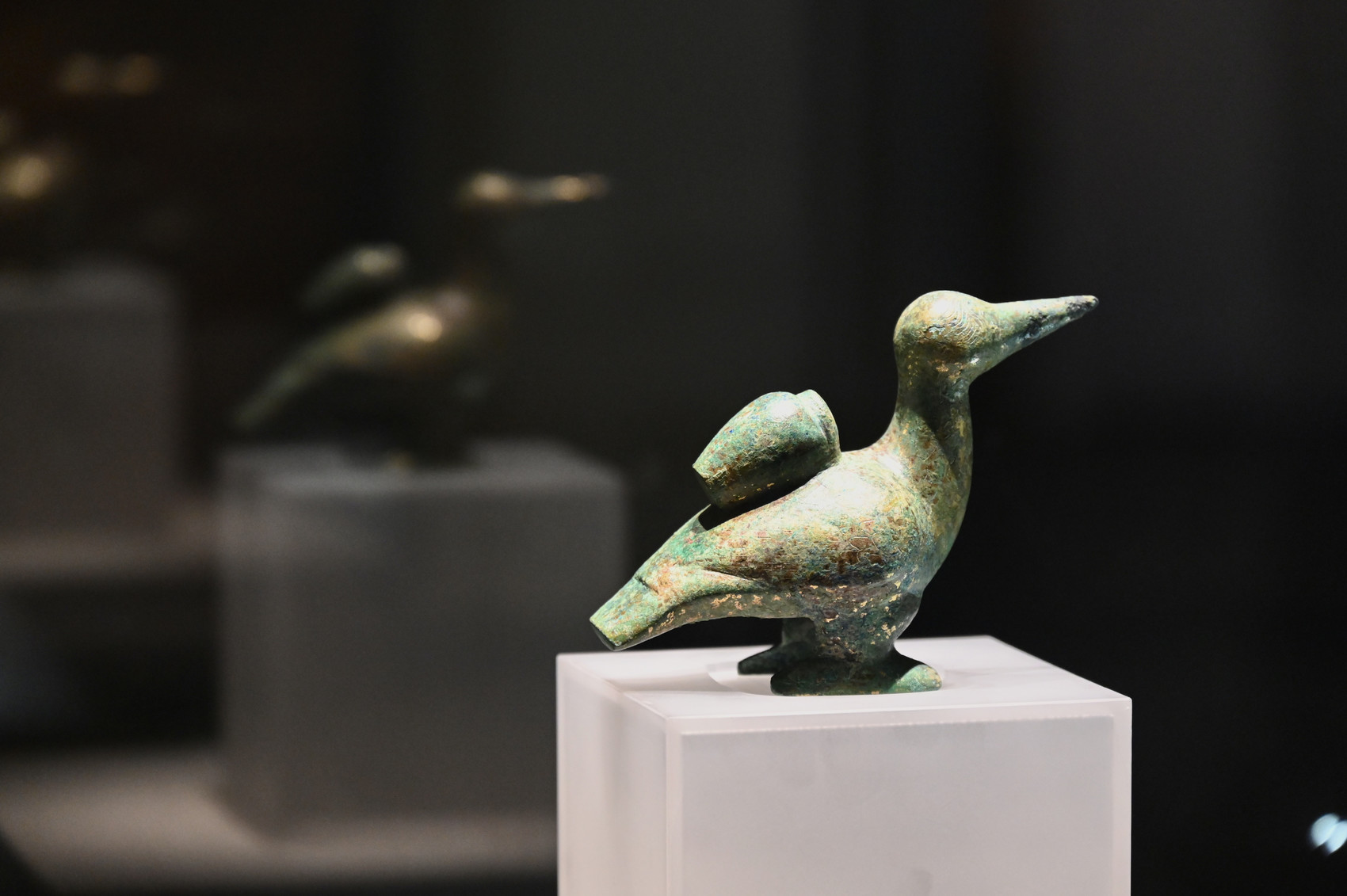 值得注意的是,南充市博物馆重要文物之一、“负罐飞行”的东汉鎏金负罐铜鸟,一经亮相便引发关注。据了解,整个西南地区出土负罐铜鸟,仅有30余件,南充市博物馆亮相的这一展品,形象生动、工艺精湛,且保存极为完整,是同类文物中极为罕见的精品。