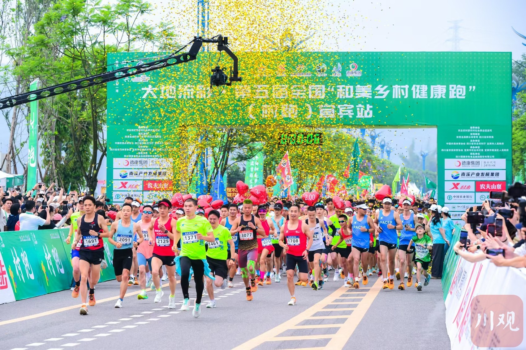 “砰!”5月19日7:30,随着发令枪响,大地流彩·第五届全国“和美乡村健康跑”(村跑)宜宾站(以下简称“村跑”)在宜宾市南溪区欢乐田园鸣枪起跑,这是2024年全国“村跑”的揭幕站活动。来自全国各地的3000余名选手,在“万里长江第一湾”的青山环抱、绿水环绕中尽情奔跑,领略乡村振兴建设的新成果。