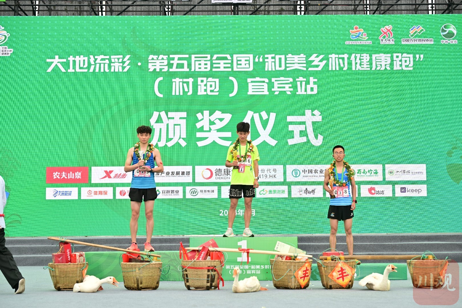 “礼品太丰厚了,有南溪豆腐干、鹅肉干、川腊肉、白酒等地方特产,还有一只大白鹅,加起来估计有七十多斤,根本拿不动。”三农情怀男子组胡峰源是成都理工大学宜宾校区学生,在健康跑比赛中获得了第一名,面对两大箩筐的奖品直呼拿不动。“这次比赛后,还会带同学来旅游,好好感受南溪的自然风光和特色文化。”胡峰源说。