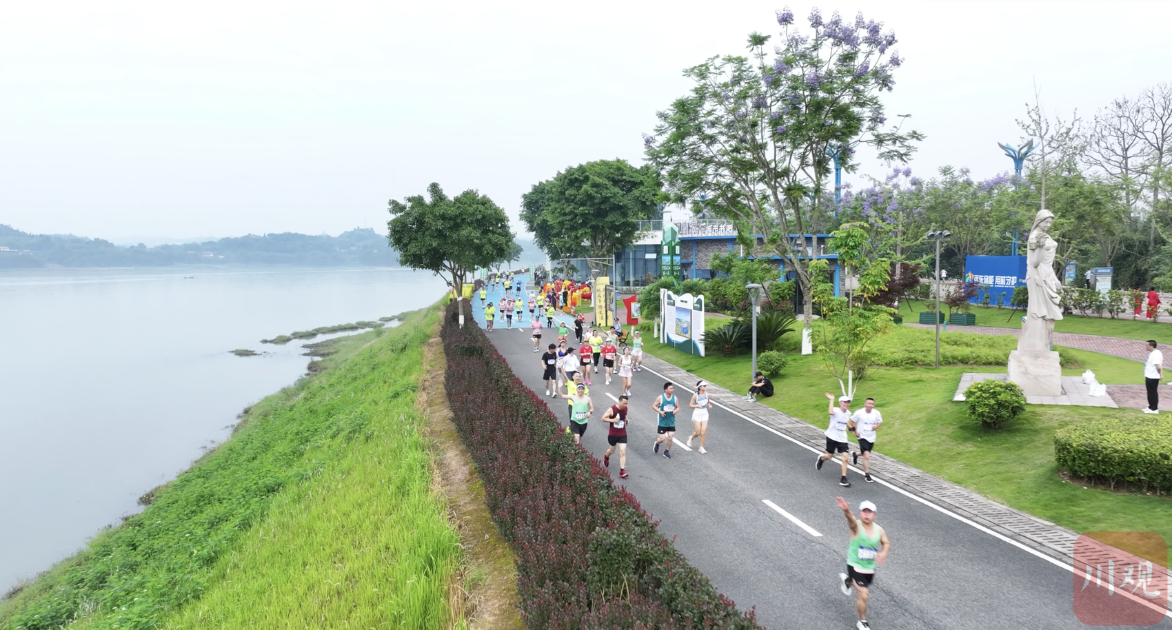 赛道两侧,美食补给、氛围演出等充分体现当地乡村特色。南溪豆腐干、南溪鹅肉干、双河凉糕等地方特色美食应有尽有。腰鼓队、莲枪、花船表演以及苗族、彝族、回族等少数民族点位展现极具地方特色的表演内容,让选手们在奔跑的过程中与宜宾的历史、文化、体育、人文和风物相遇。