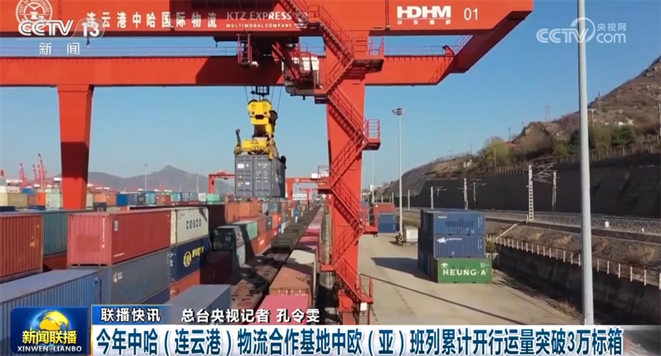 今年中哈(连云港)物流合作基地中欧(亚)班列累计开行运量突破3万标箱