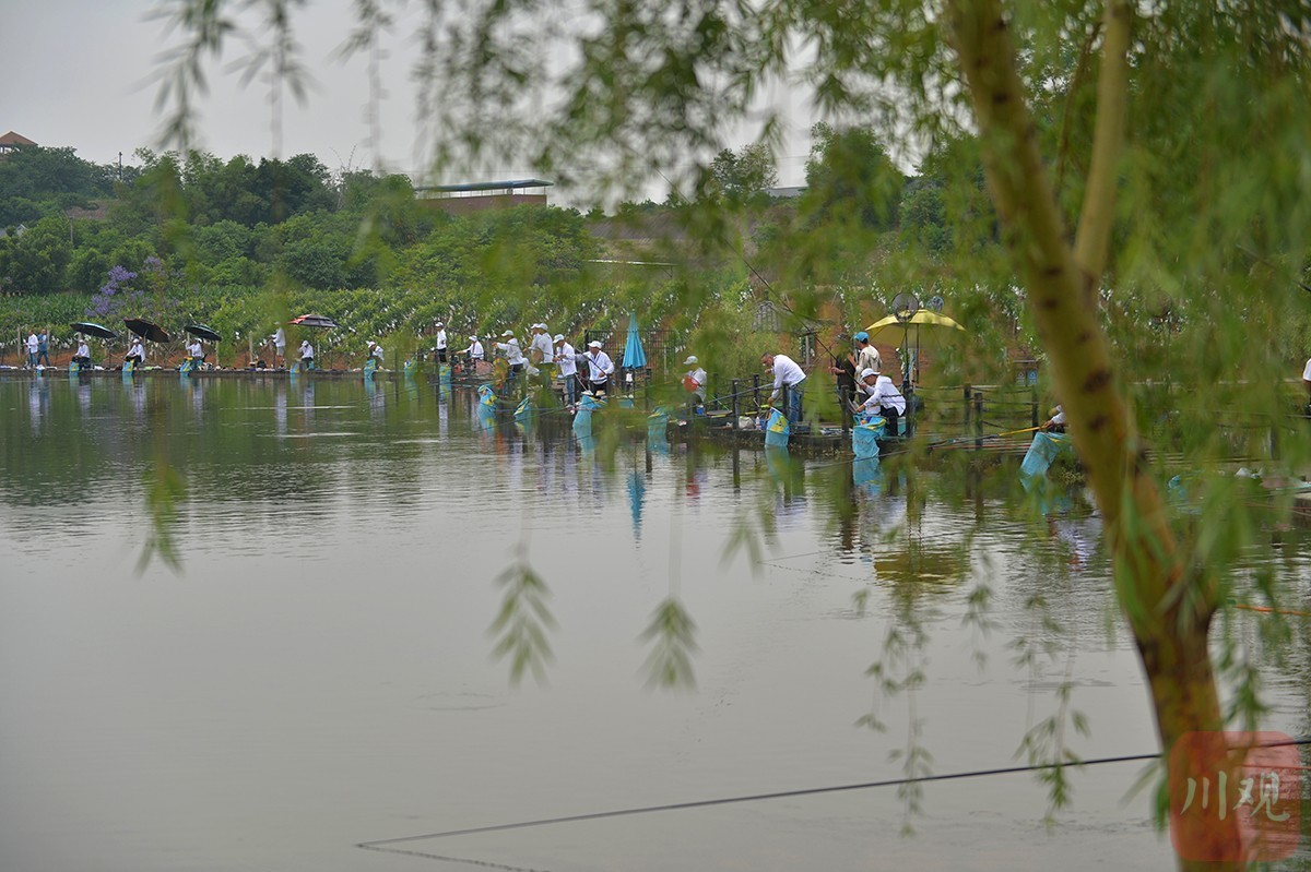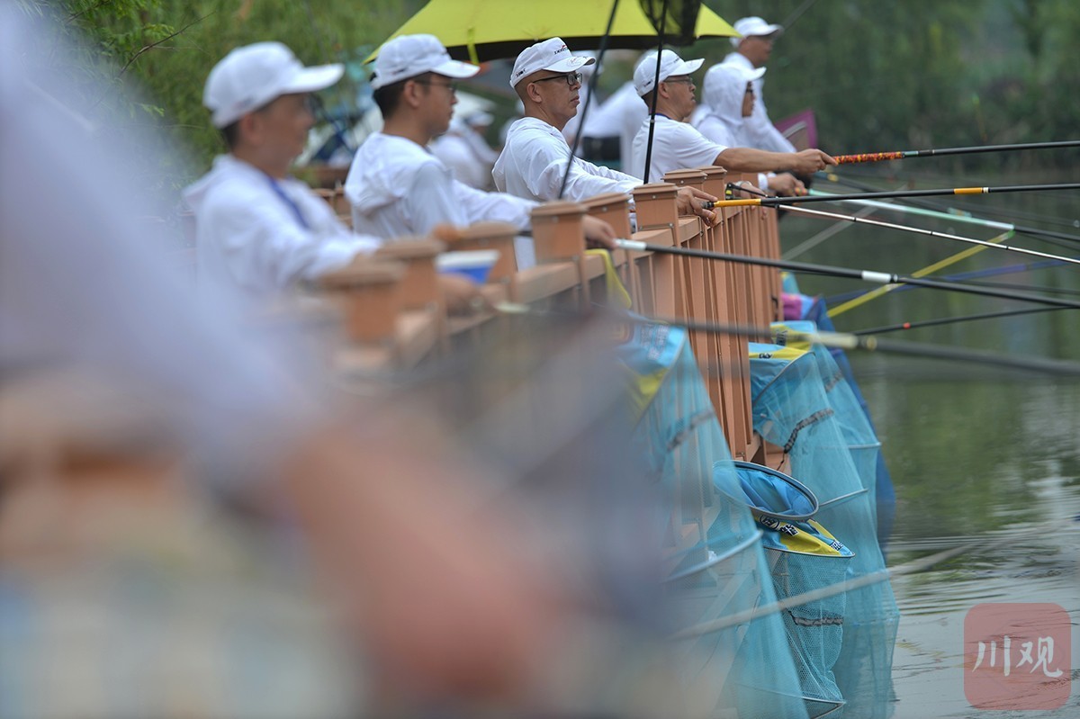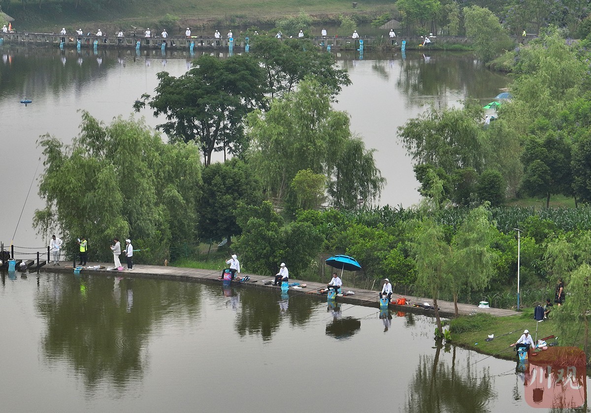 参赛选手们分散围着鱼塘展开竞技比赛。