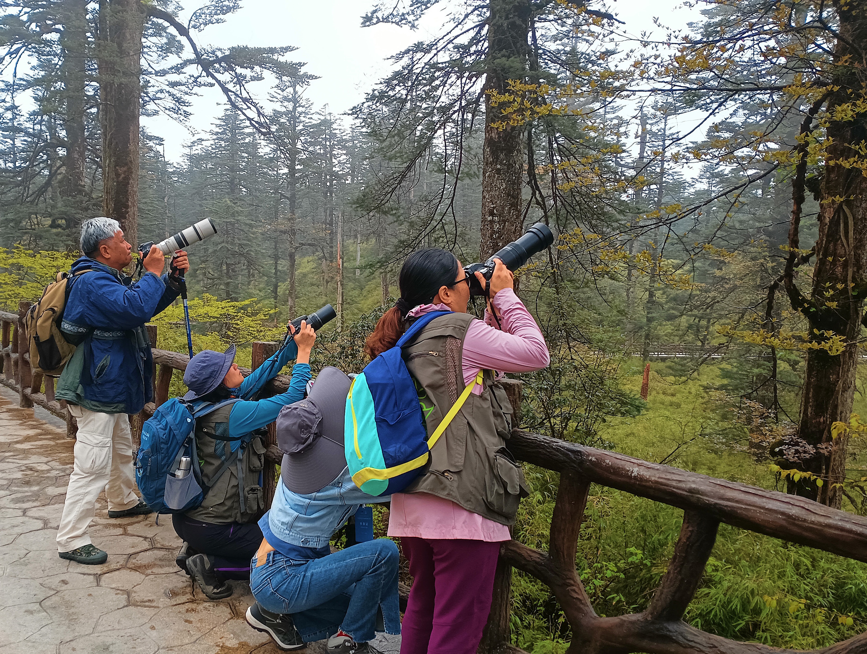 比赛期间,国内外的31支专业观鸟队180余人齐聚瓦屋山,通过听、观、拍、记等方式,对鸟类进行观察和记录。他们巡山、入林,各显本领,拿起望远镜、相机,或闻声识鸟,或耐心静候,进行脚力、眼力、技术的比拼。他们因镜头记录到珍稀鸟类而欢呼雀跃,也为晨雾弥漫、鸟啼阵阵的美景所陶醉。