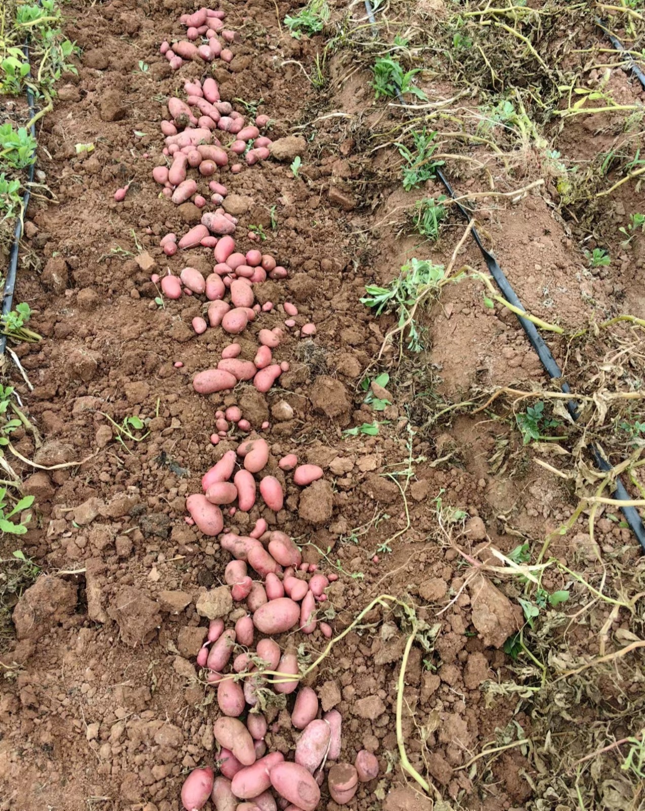 5月19日,记者随沈学善一同来到钟佩的地里了解情况。沈学善团队在竹篙镇建有示范点,在开展科研工作的同时,长期为钟佩等周边种植户提供技术指导。在专家指导下,钟佩种上了市场上少见的紫色、红色马铃薯新品种,还用上了滴灌技术,种出来的马铃薯个头大、产量高,效益逐年上升,但今年却有些反常。