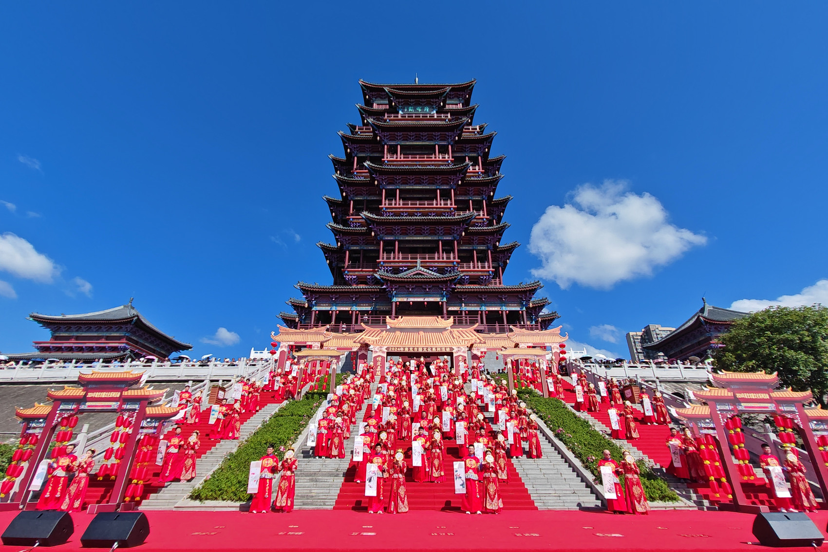 在泸州市江阳公园,50对新人身着汉式礼服入场,牵红绸,撒五谷,聆听家训,夫妻签下文明婚俗新风倡议书、文明婚约婚庆承诺书、恩爱责任书,完成一场极具中式浪漫的集体婚礼。