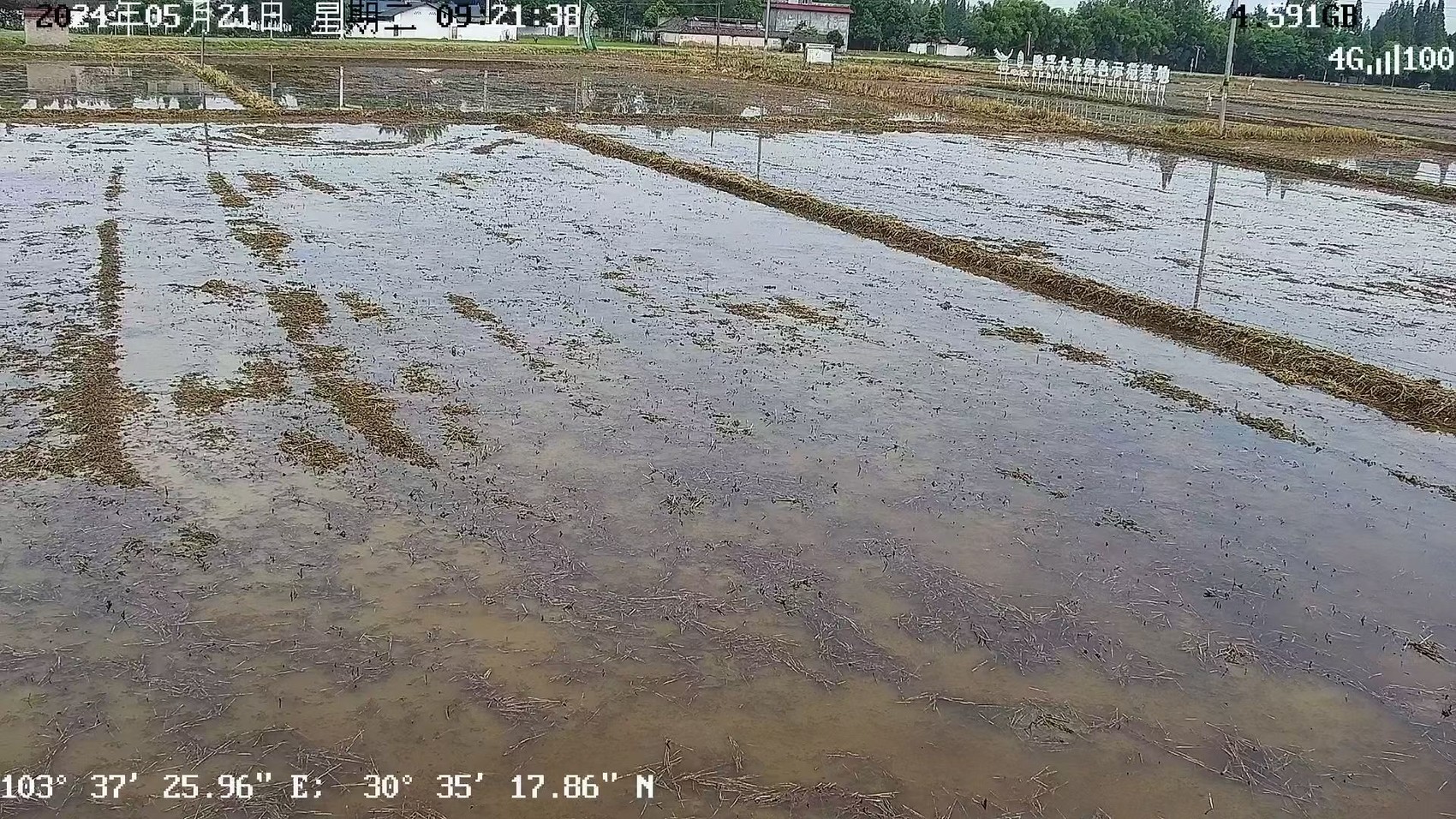 5月21日,AI团队摄像头拍到的高颖负责的田块画面,目前正处于泡田阶段,近期将开始插秧。