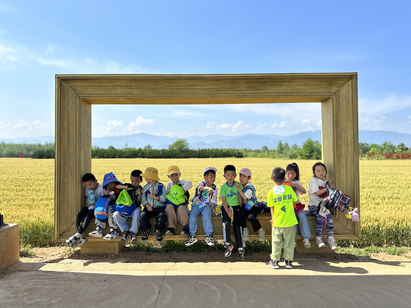 “看向老师的手机镜头,笑一笑!”金台区德邻幼儿园保育老师马丽琼耐心引导孩子们在麦田旁的观光长廊拍照打卡点坐了下来。照片画面中,层层麦浪、叠叠山峦成为映衬孩子们纯真笑容的最佳背景板。