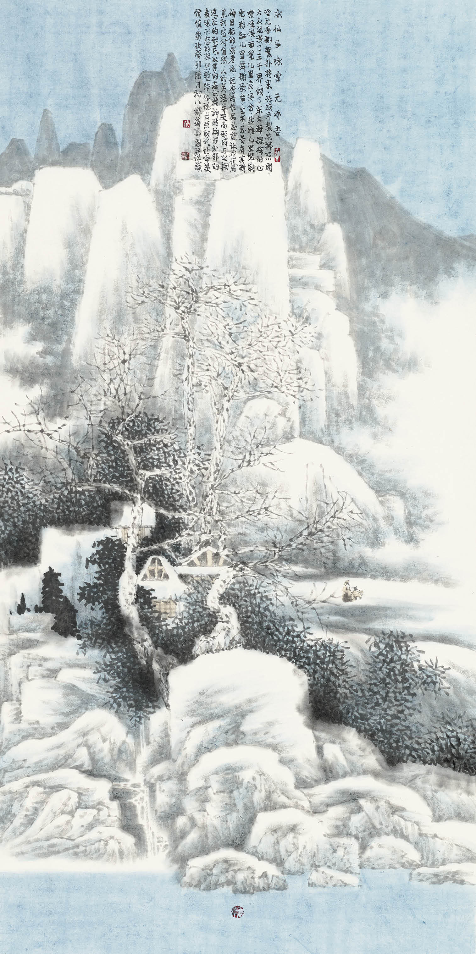这些画作大道充盈,匠心独运,既是对传统诗意绘画的虔心承续,又在构图、技巧、形式上大胆创新,从情感层次和哲理深度上展现了他对历史和现实、自然和人文、此处和他处的深刻理解与感悟。纵观山水画界,如此数量,如此尺幅,如此精湛,实为少见。若他属第二,不知有没有人敢称第一。