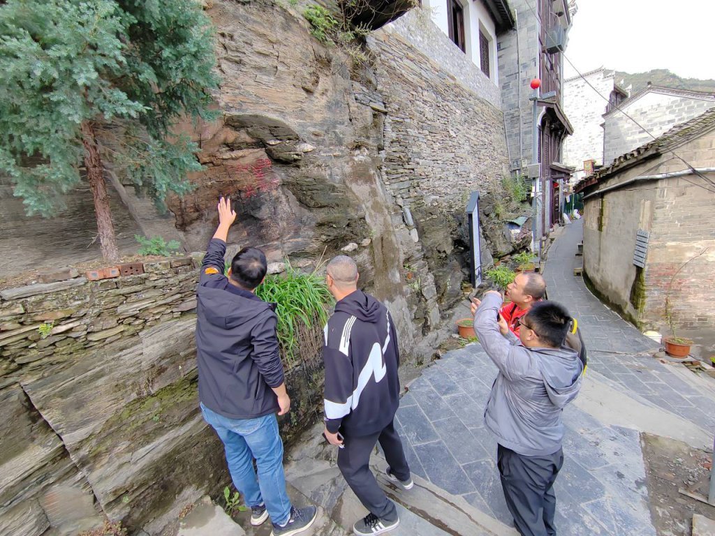 蜀道上的古建筑遗存。作者(中)在陕西旬阳市蜀河镇考察。 李光华 摄