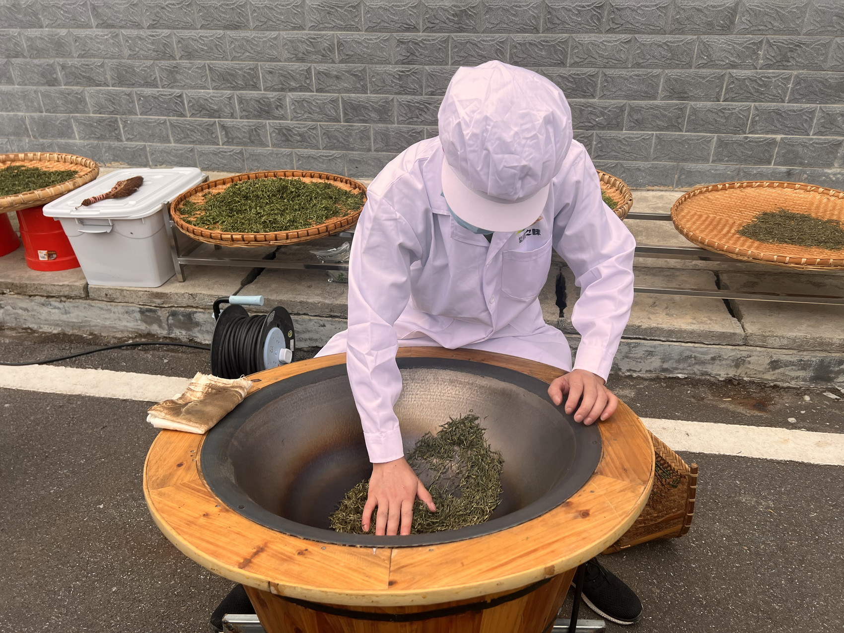 惊艳之处在于,炒茶师傅需徒手在最高温度可达300摄氏度的锅里炒制茶叶,以双手精准感知温度和茶叶的各种变化,这样加工出来的茶叶温润柔和,口感鲜爽并富有层次,品质上乘。“要想练就这种‘铁砂掌’绝技,需要做到‘手不离茶,茶不离锅’。”王高熙说。