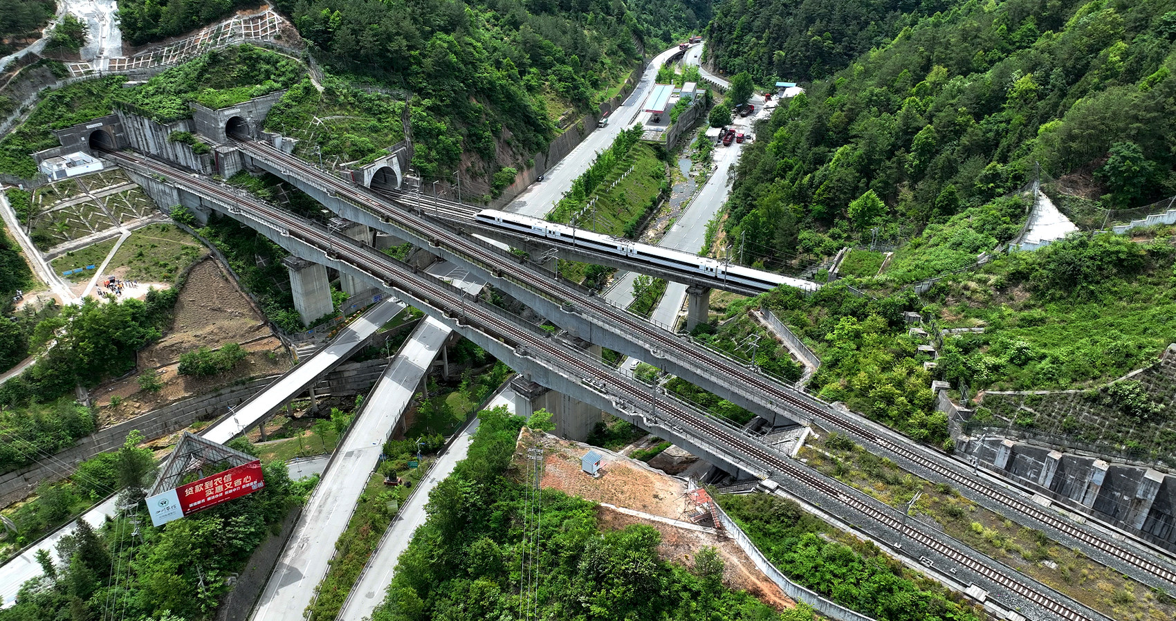 站在距离青川站几公里外的一处观景台上,中国铁路成都局集团有限公司广元车务段站长何昌隆向采访团抛出了第一个关键词——“站线分离”,即车站没有修在高铁正线上。