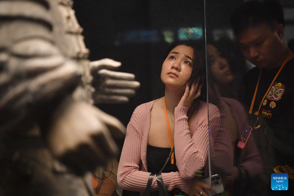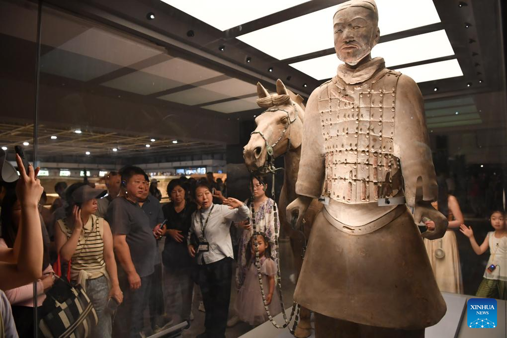 People visit the Emperor Qinshihuang's Mausoleum Site Museum in Xi'an, northwest China's Shaanxi Province, May 17, 2024. Xi'an, one of the ancient capitals in Chinese history, attracts a growing number of tourists in recent years. (Xinhua/Shao Rui)