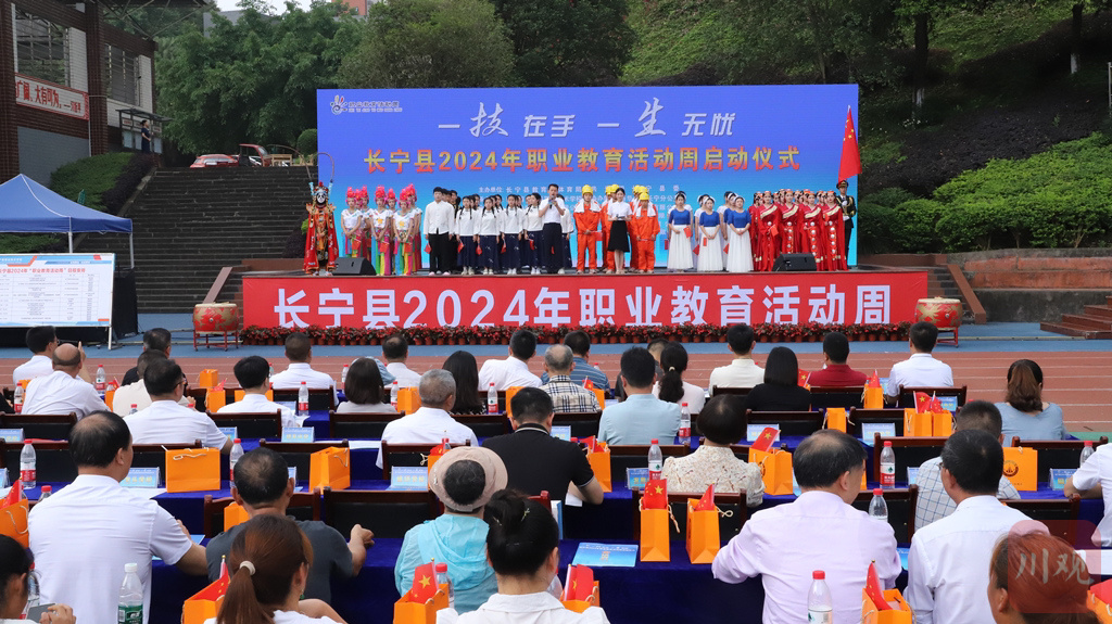5月21日,宜宾市长宁县举行2024年职业教育活动周启动仪式,邀请社会各界、校企合作企业、家长代表走进校园。通过学生技能展示、才艺展演等一系列活动,宣传优秀学生、优秀教师和优秀毕业生,向社会各界展示长宁县职业教育办学成果。