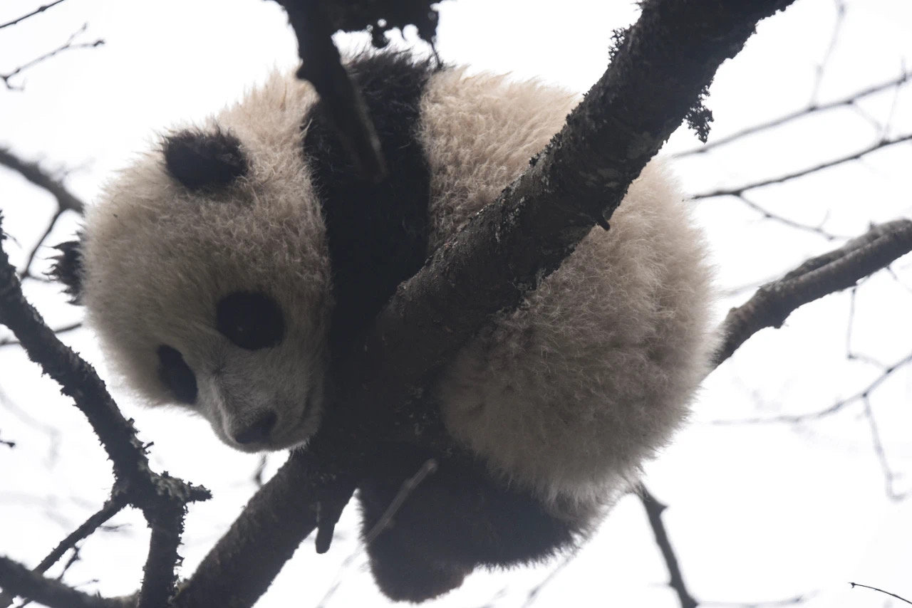 大熊猫国家公园拍摄到的野生大熊猫幼崽。(图片由大熊猫国家公园唐家河片区提供)