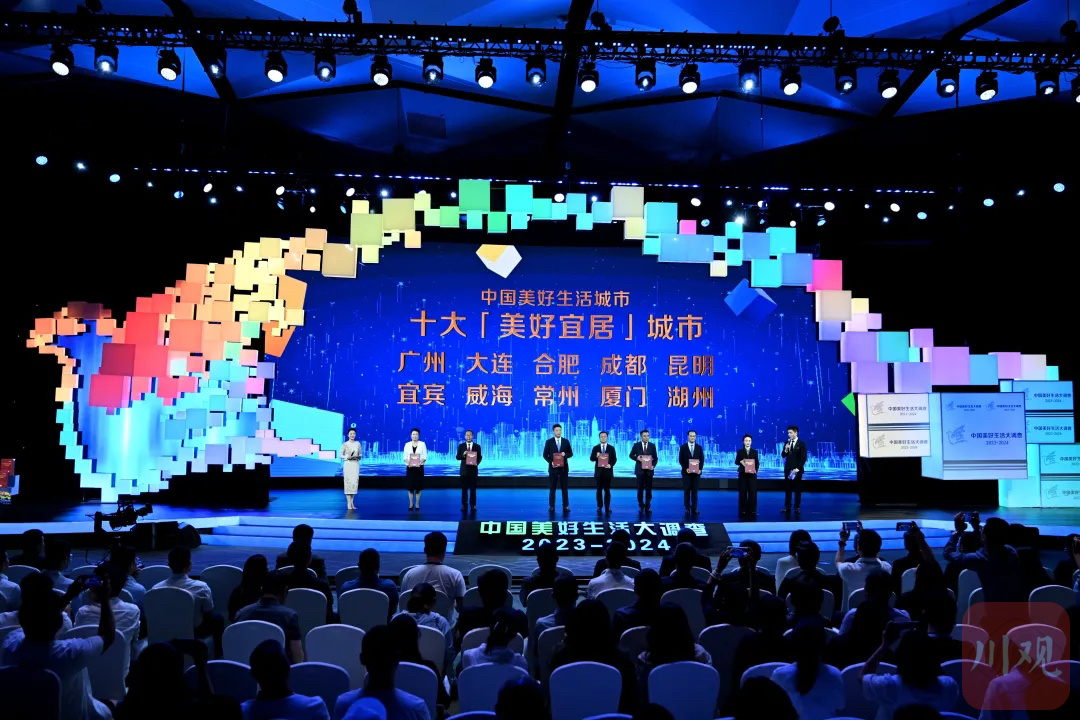5月21日至22日在成都举行的《中国美好生活大调查(2023-2024)》数据发布系列活动中, 宜宾获评中国美好生活城市十大美好宜居城市。