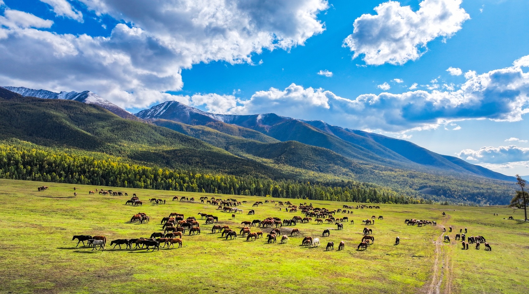 新疆阿勒泰,秋日喀纳斯牛羊遍地,水丰草盛。