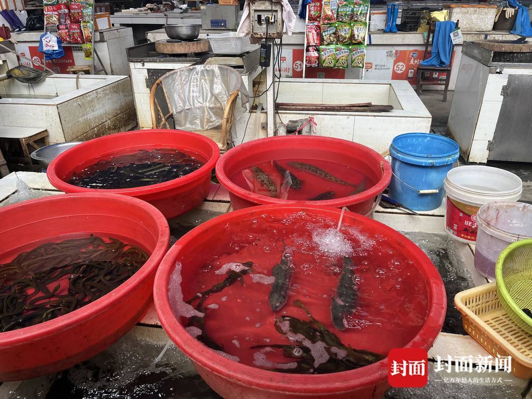 另一商铺主人在“黄牌”前放了一张椅子,椅背上有一个白色的塑料膜,将“黄牌”遮挡住了,只隐约可见一点黄色。面对记者的到访,不停地询问记者要购买什么,“鲈鱼、乌鱼都有。”并不将“黄牌”亮出来,也不谈“黄牌”的事情。