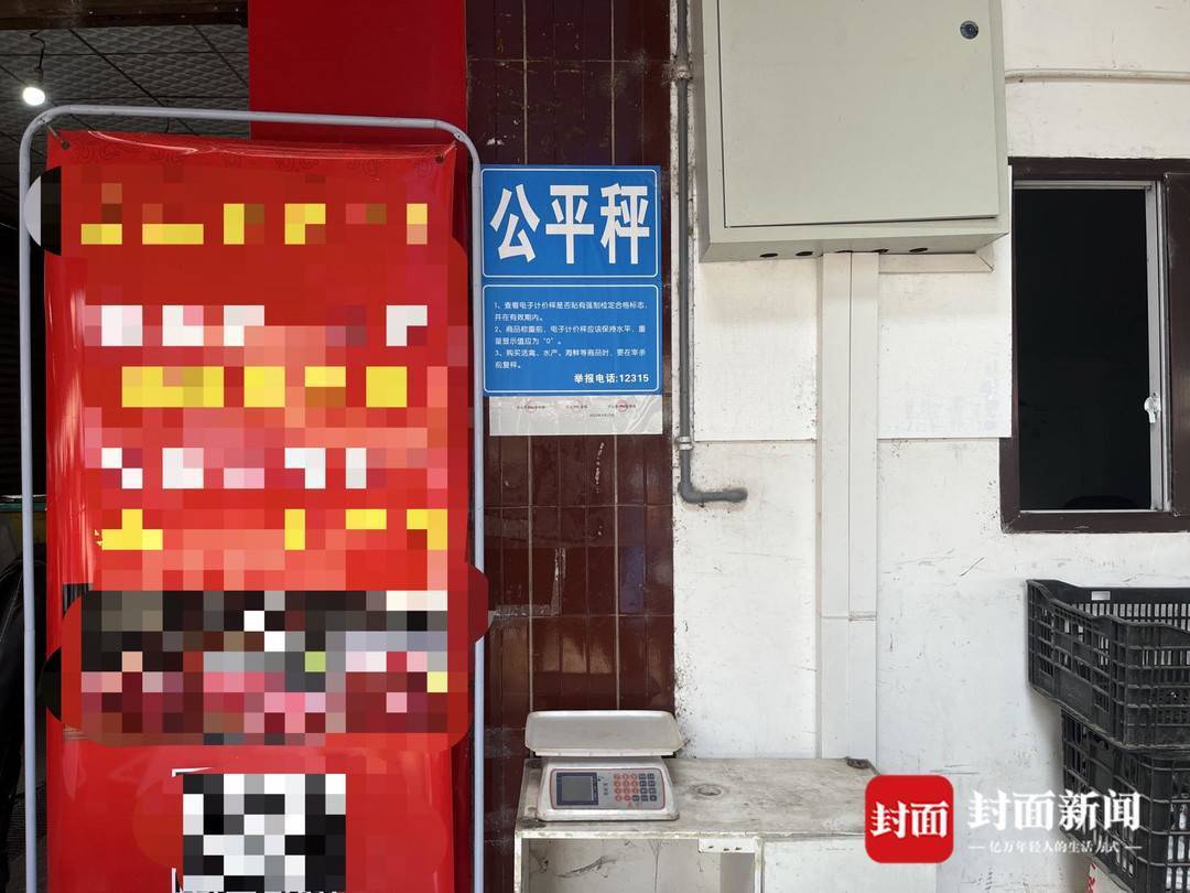 其中一家卷帘门半开着,没有营业,张贴在门外墙柱上的“黄牌”掉落在了下方杂物上,看不出“黄牌”本来张贴的样子。看到记者的到来,商家转身进到了商铺里面,没接受采访。反而是隔壁商家情绪较为激动,不停地强调:“不知道‘鬼秤’的事,你看我这秤有没有问题,你来看!”