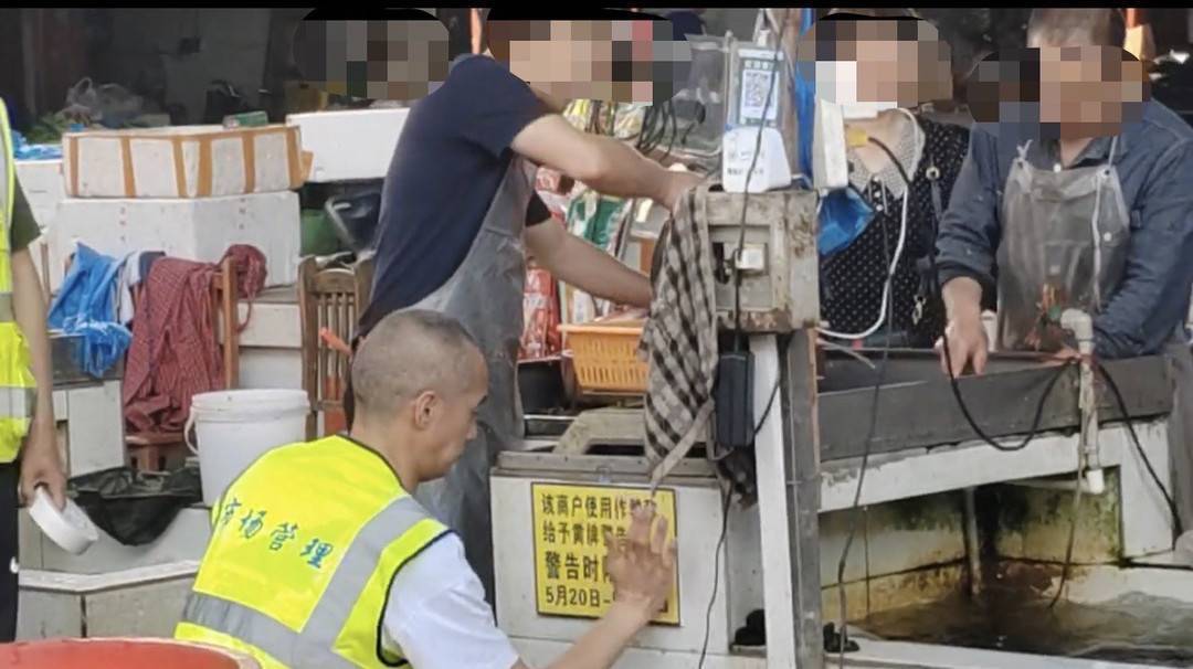 “两家商铺都是第一次发现这个问题,所以除了贴牌警告以外,没有再作别的处罚。”5月22日,市场负责人何先生告诉记者,“黄牌”会在经营户摊位上张贴7日,“如再有计量作弊、缺斤少两等违法违规行为,我们将把他们驱离市场。”