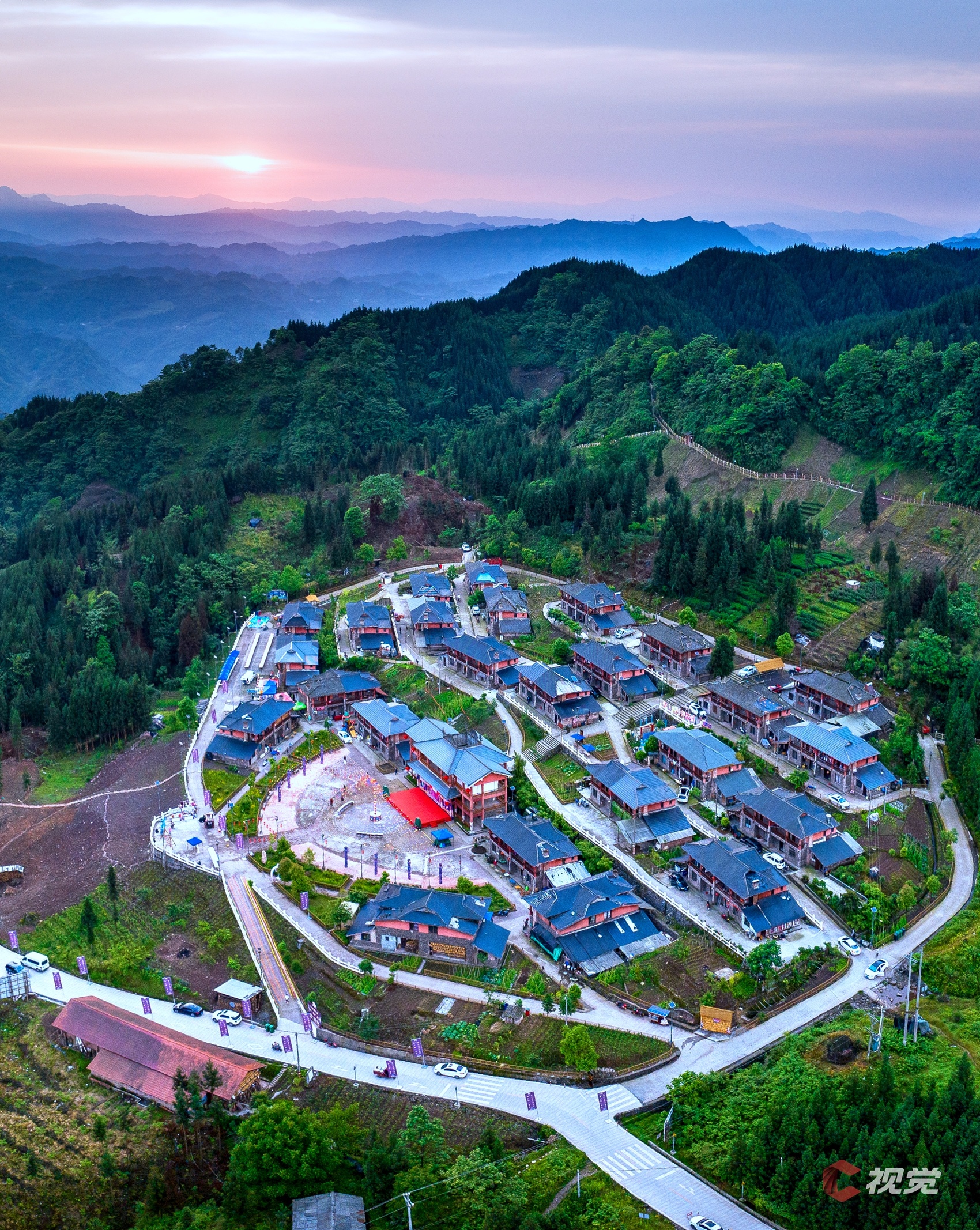 苗寨日出,美如“世外桃源”。