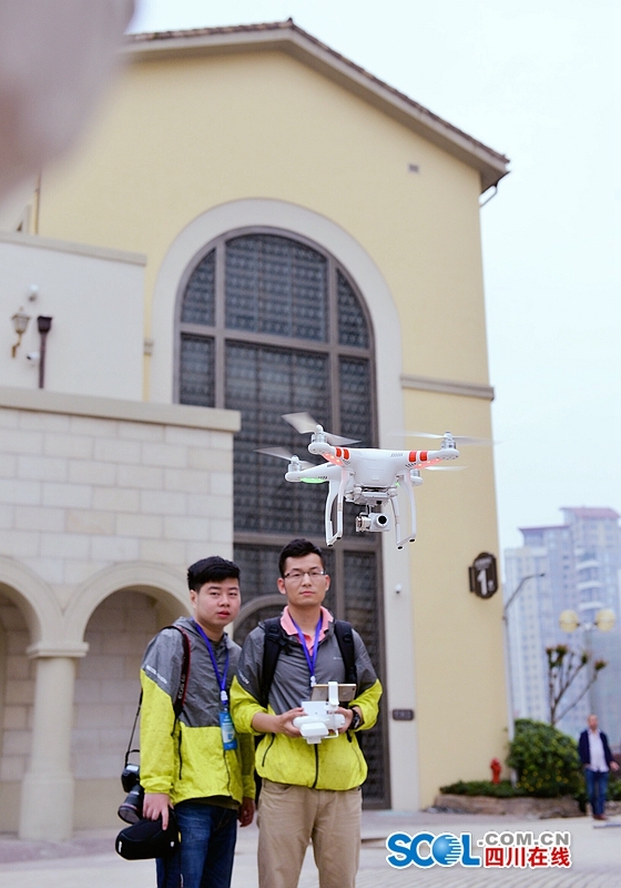 在已建成的麓山美术馆门口,媒体记者们终于忍耐不住“飞”了起来,三三五五围着操控器,通过数据传回的照片鸟瞰整个小镇全貌。