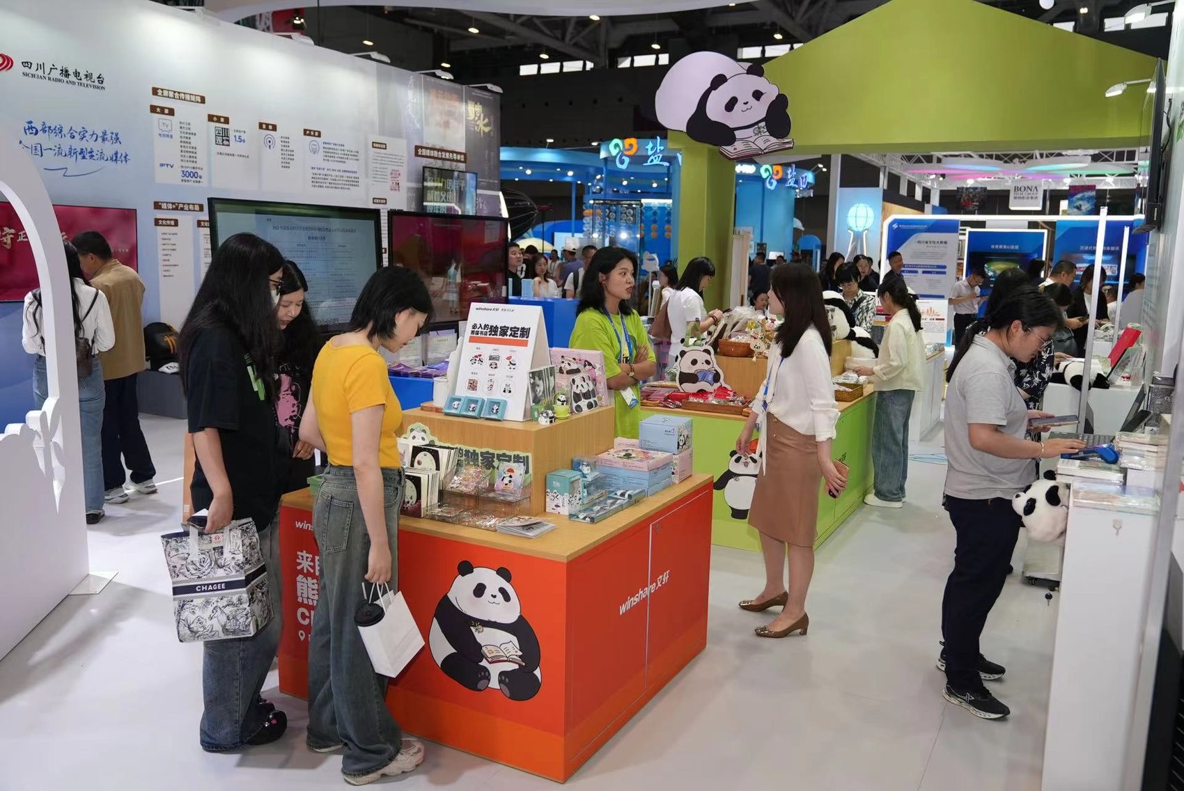 展馆中,新华出版发行集团“熊猫书店”,则以规模庞大的“熊猫+出版+文创”吸引了不少来访者。书店以熊猫为主题,探索多元融合,为实体书店发展探寻出了一条独特发展路径。