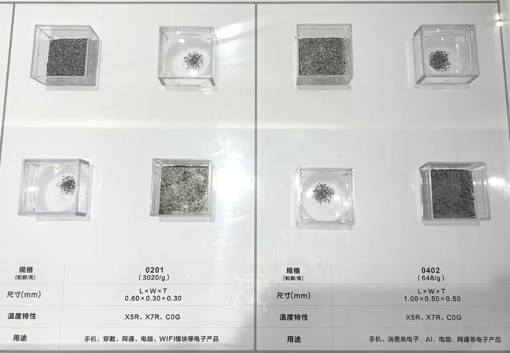 风华高科生产的部分电容产品,用于手机、消费类电子、AI等电子产品。受访企业供图
