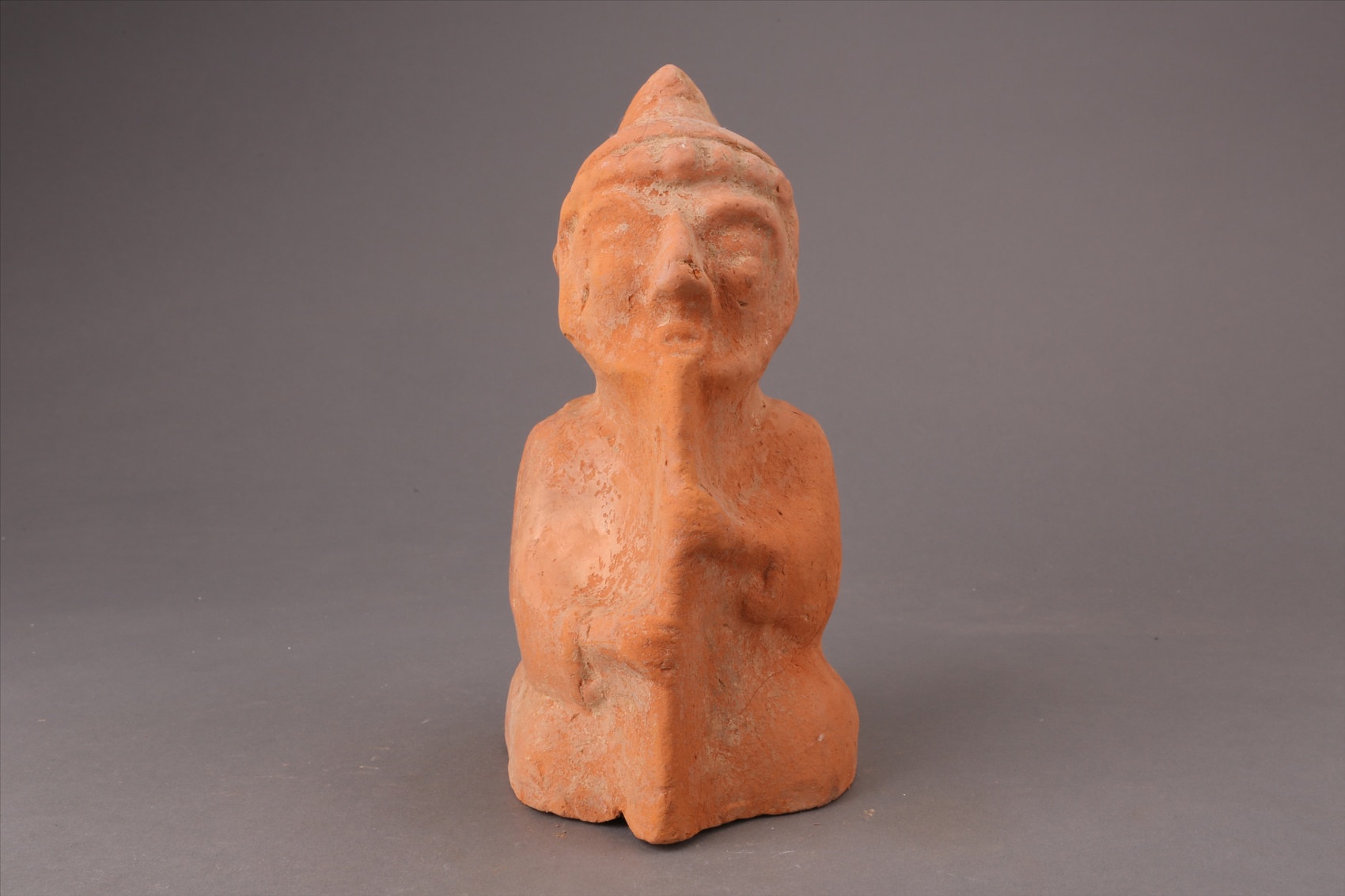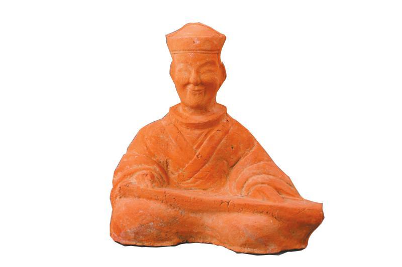 红陶胡人吹箫俑,东汉(25-220年) 重庆市文物考古研究院藏