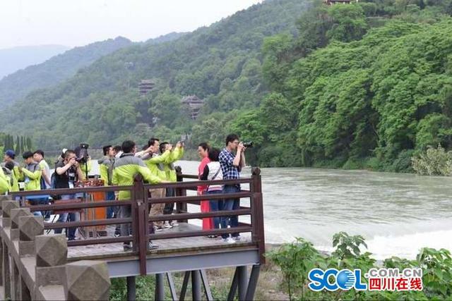 站在鱼嘴工程上方,看着滔滔江水在都江堰水利工程的作用下被引入成都平原造福千万百姓,媒体记者们对这座巧夺天工的水利工程啧啧称奇。