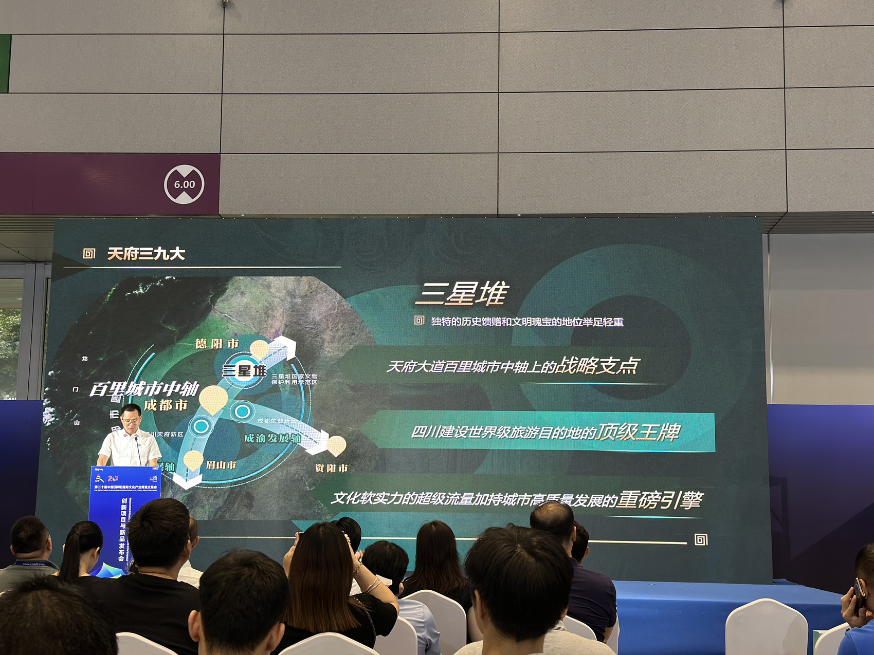 推介会上,三星堆文化旅游发展区多个招商项目亮相。据悉,在成功创建首批国家文物保护利用示范区基础上,德阳高水平规划建设三星堆文化旅游发展区,规划面积约2平方公里,以三星堆探秘之旅为主题定位,通过特色场景建筑和文化体验策划,打通文物—文化—文旅活化链条,把三星堆文化活化为各类消费体验场景,联动大遗址、大文博,建设功能联接、相互促进、协同引流的文旅融合大景区,打造吃、住、行、游、购、娱文化体验消费产业园。