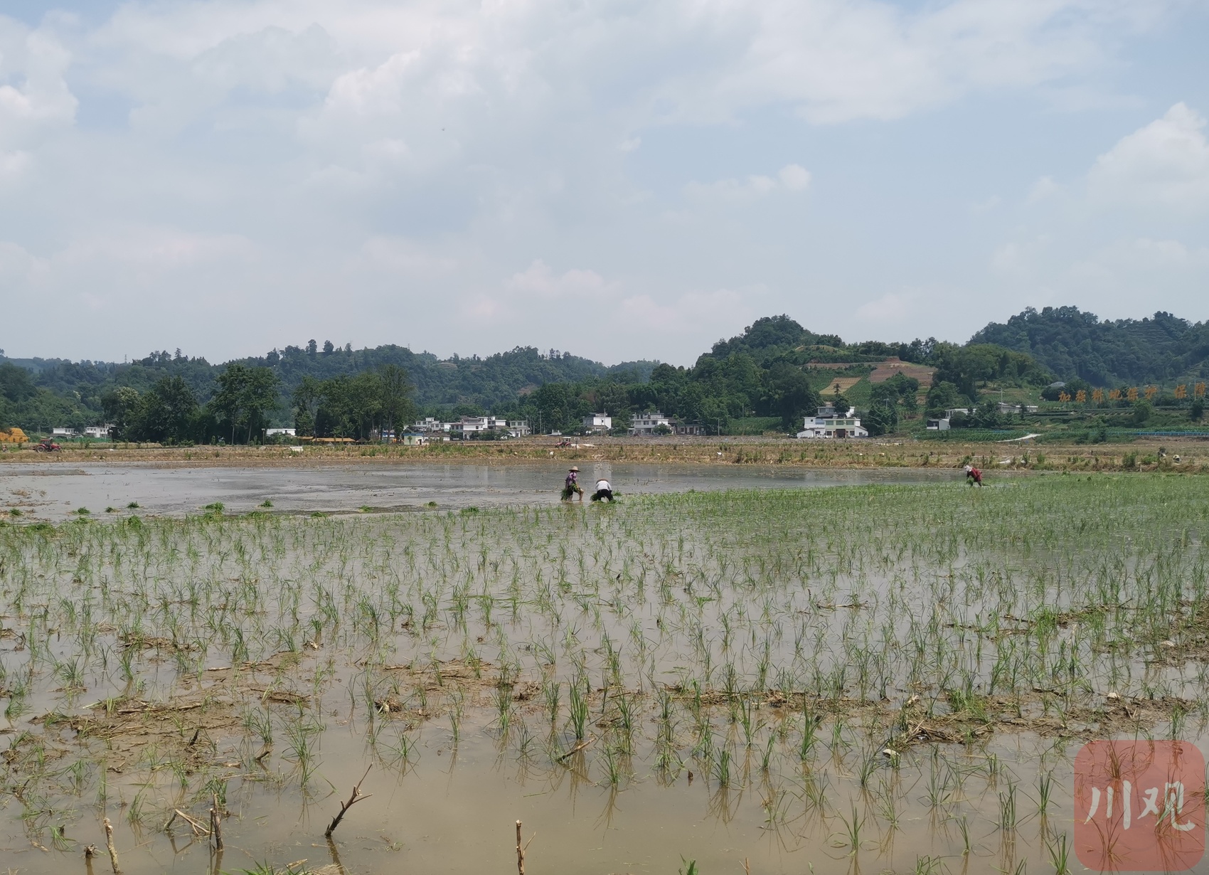 在雅安市名山区车岭镇天池村,雅安瑞霖农业科技发展有限公司工作人员陈吉勇正在组织村民插秧。“打个电话水就来了,而且来水很充足,我们这几天要赶着把公司承包的500多亩土地,全部种上水稻。”陈吉勇说。