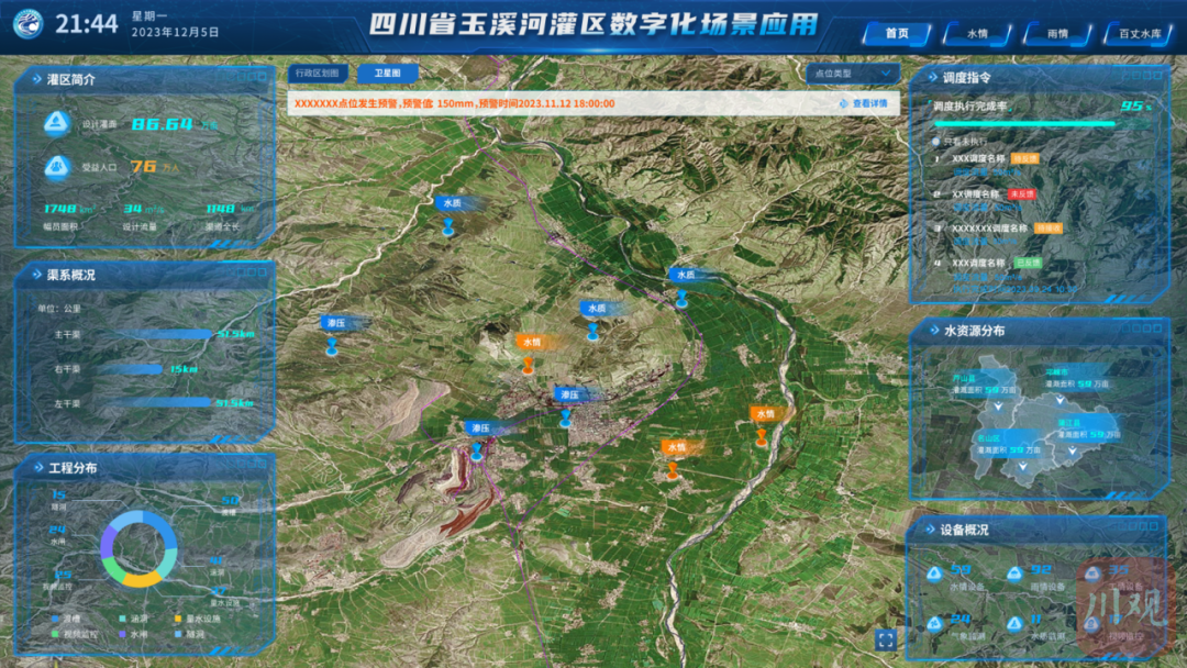 大型灌区是四川粮食和优质农产品生产的重要“战场”。同样,在全国第一大灌区——都江堰灌区,今年春灌期间,都江堰灌区也充分利用了数字孪生系统,实现对岷江上游来水的精准化监测,渠首六干渠配水智能化调度、重要制口闸门远程化操控、调水配水全流程线上作业,岷江水实现从源头到田头“一键直达”,全力保障598.4万亩水稻栽插任务,预计6月上旬可基本实现“关秧门”。