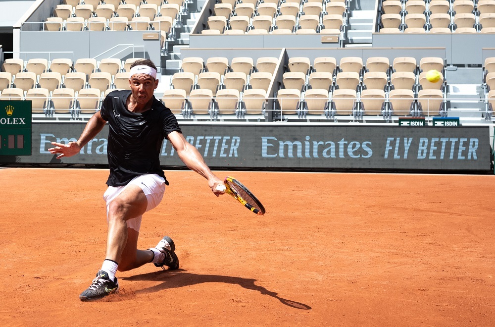 2024法国网球公开赛将于5月26日至6月9日在法国巴黎举行。图为5月24日,西班牙选手纳达尔在训练中回球。新华社记者 孟鼎博 摄